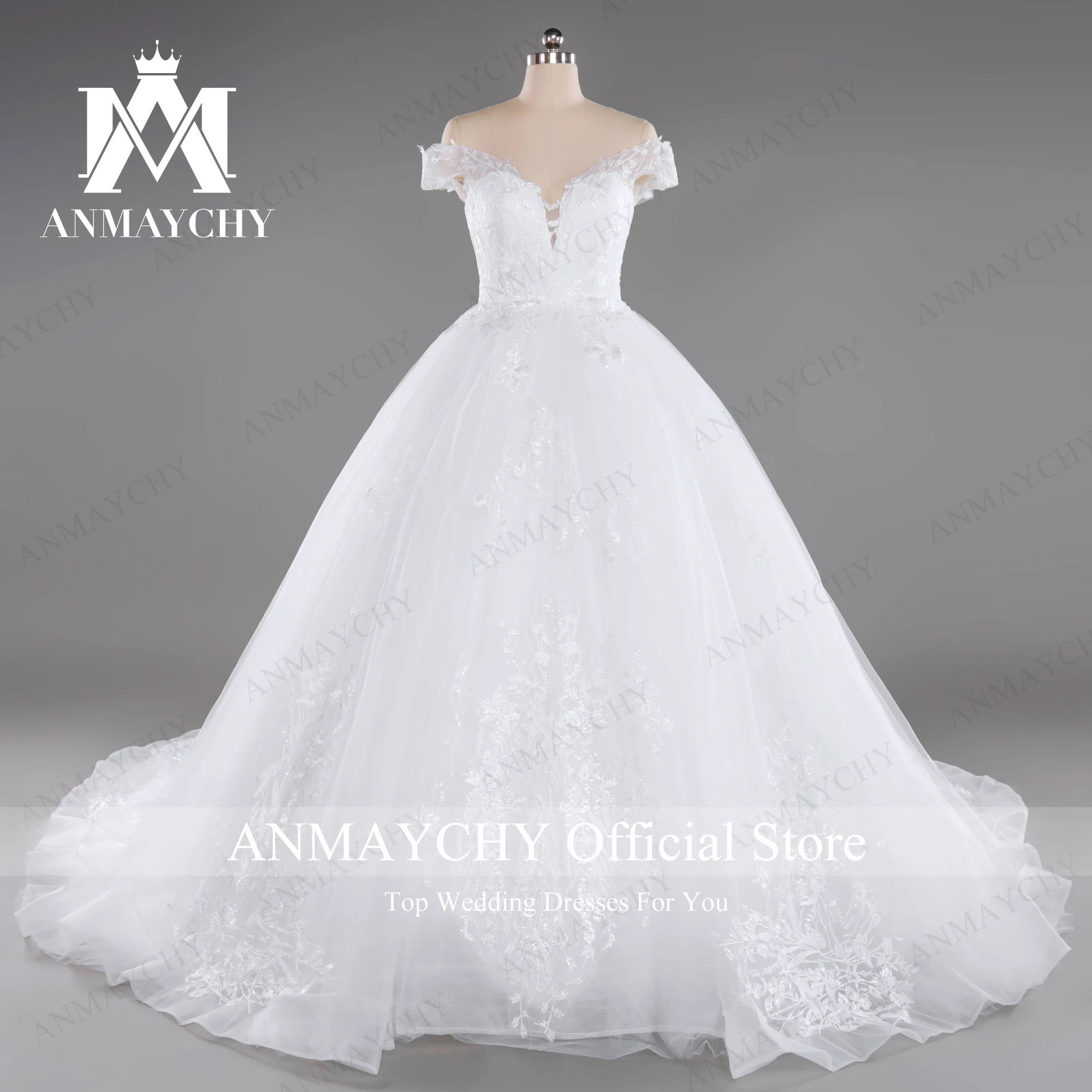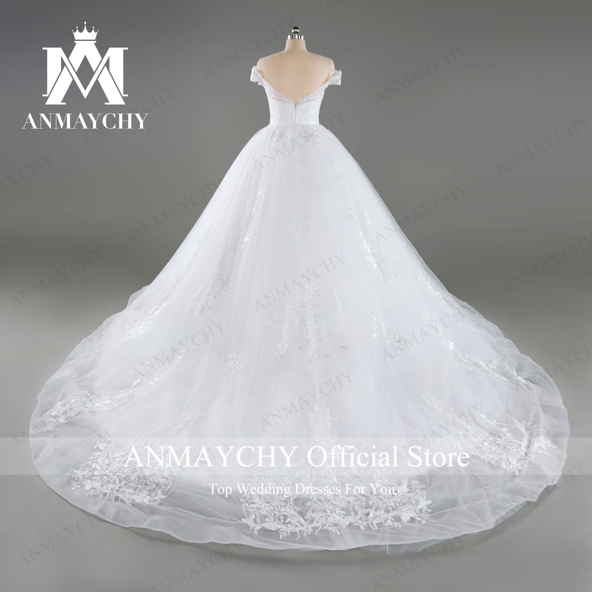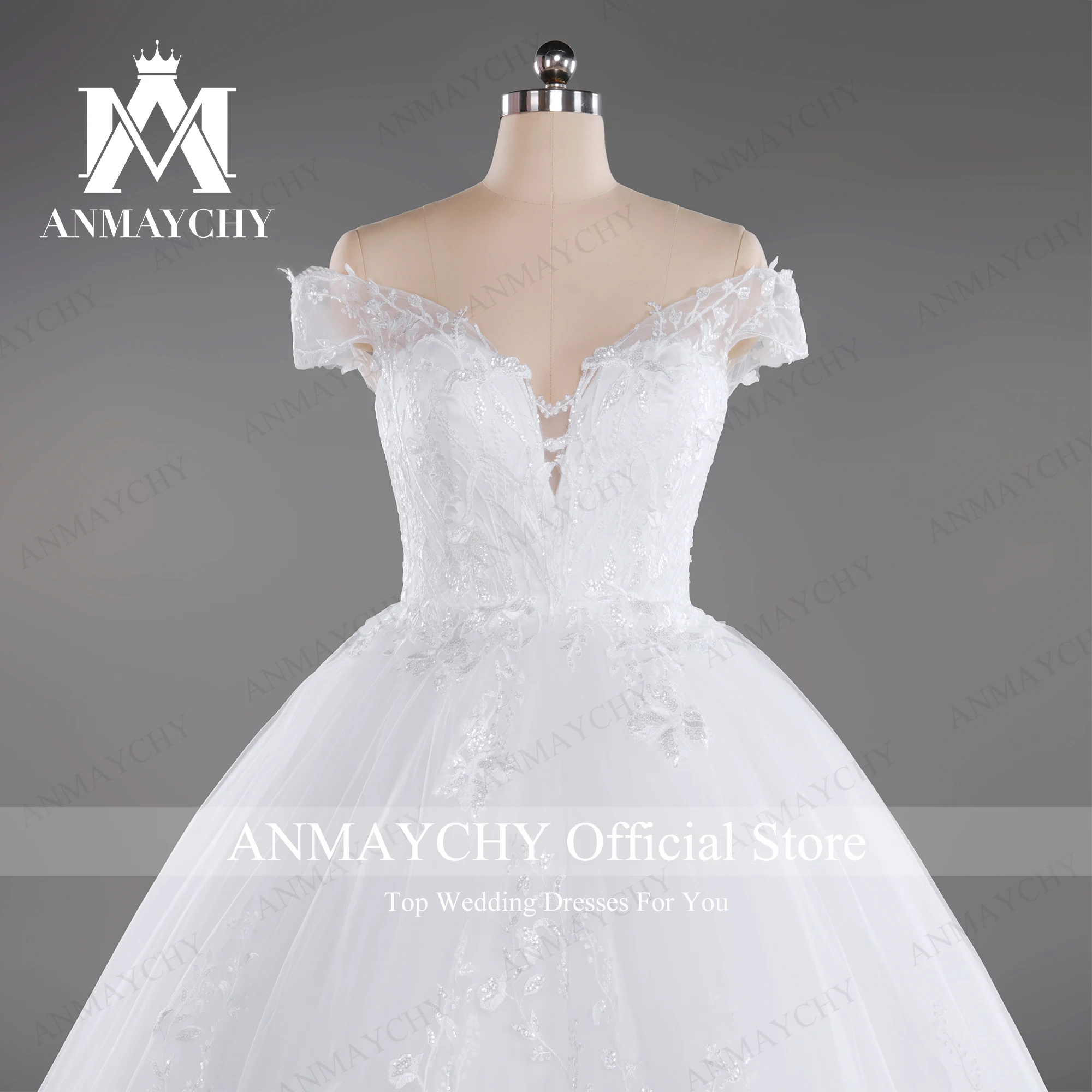 • ANMAYCHY A-Line Wedding Dress For Women 2022 Bride Sweetheart Off The Shoulder Backless Appliques Wedding Gown Vestidos De Novia