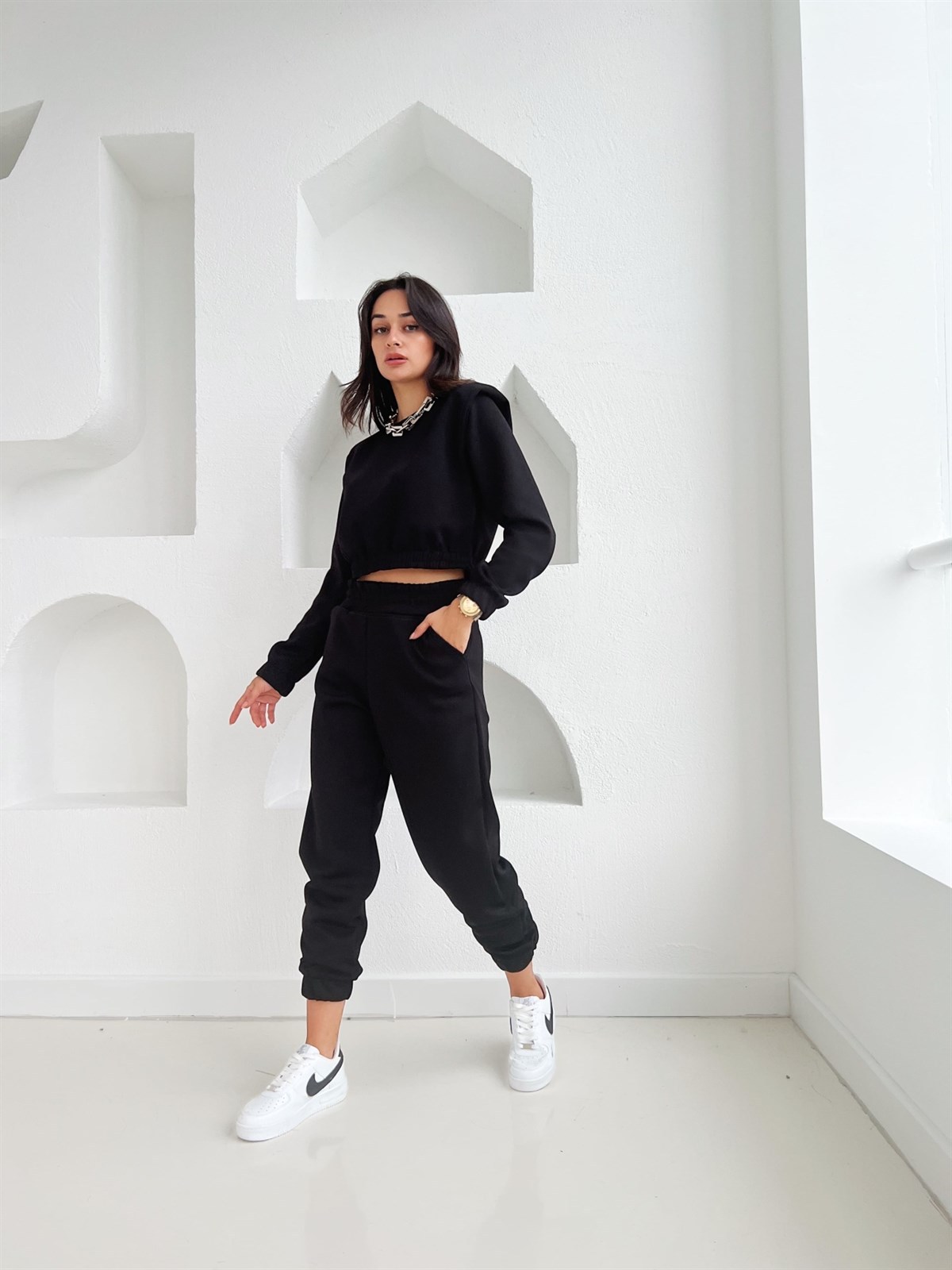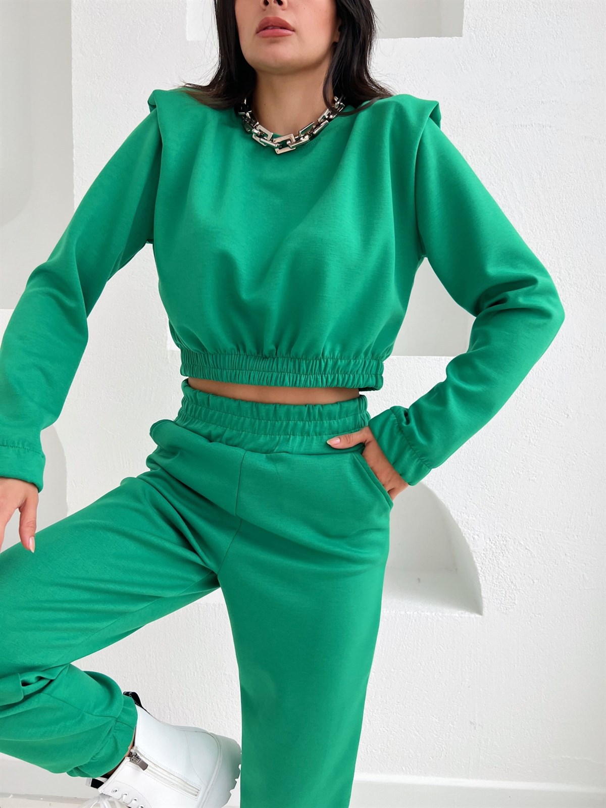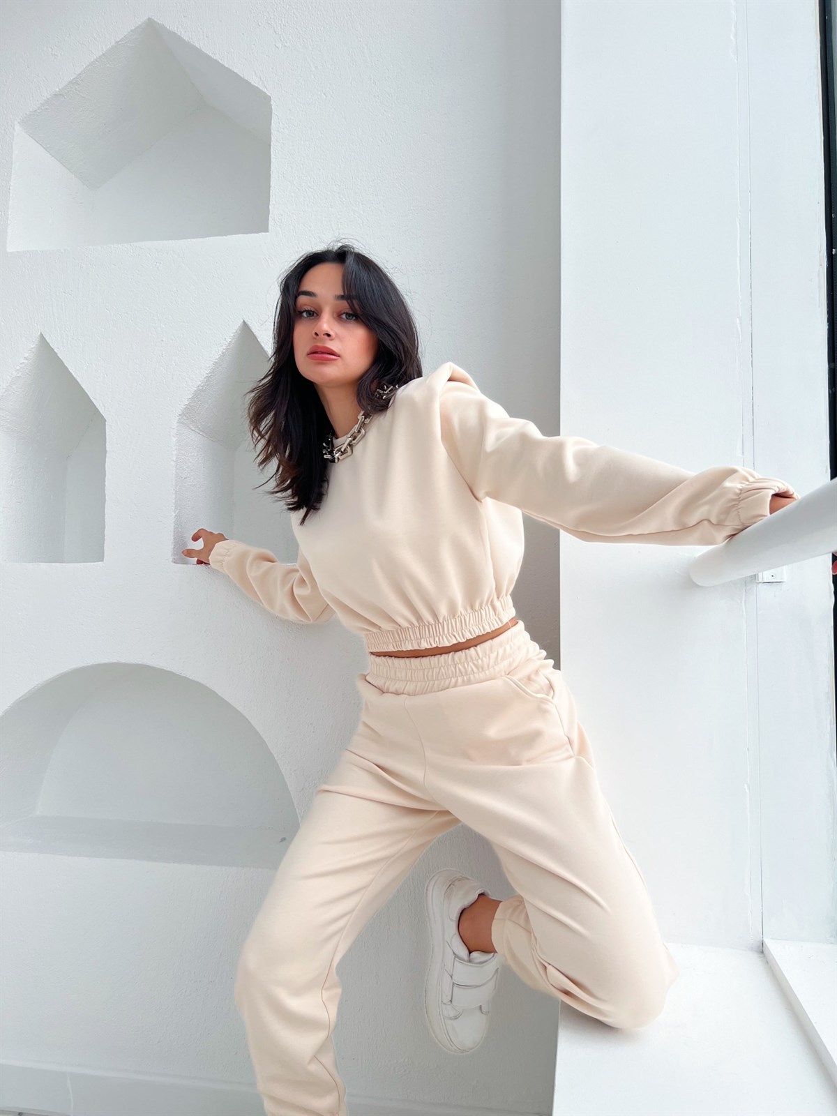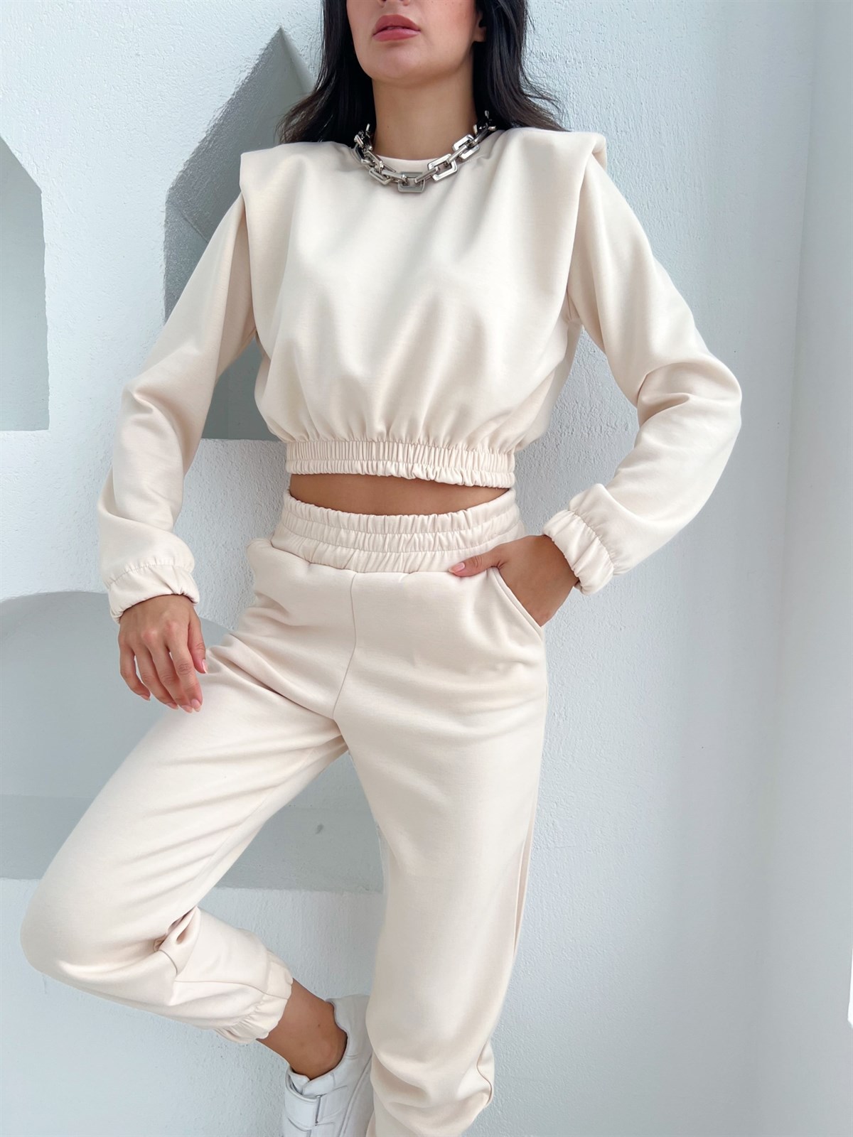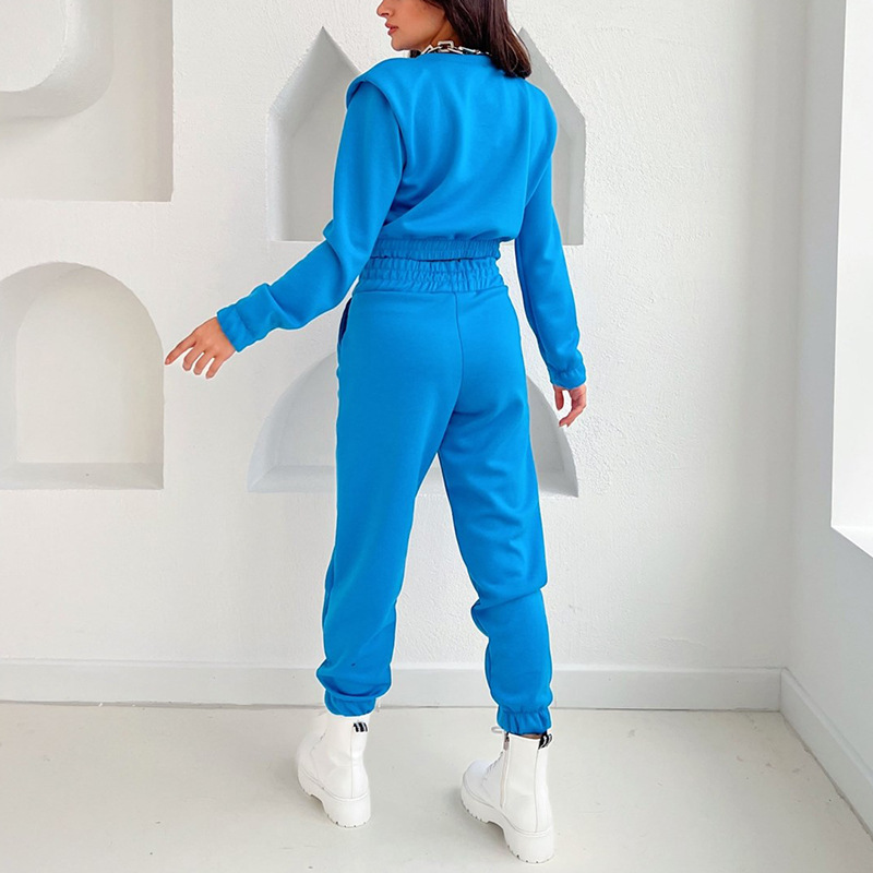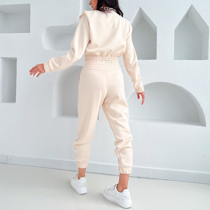 Autumn Winter tracksuit set women casual crop top and Elastic waist long pants two piece set Lady solid color pullover top set