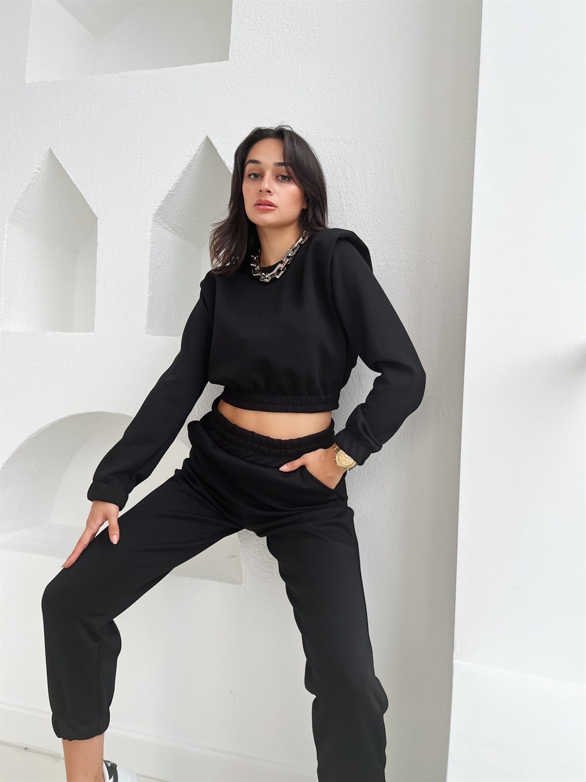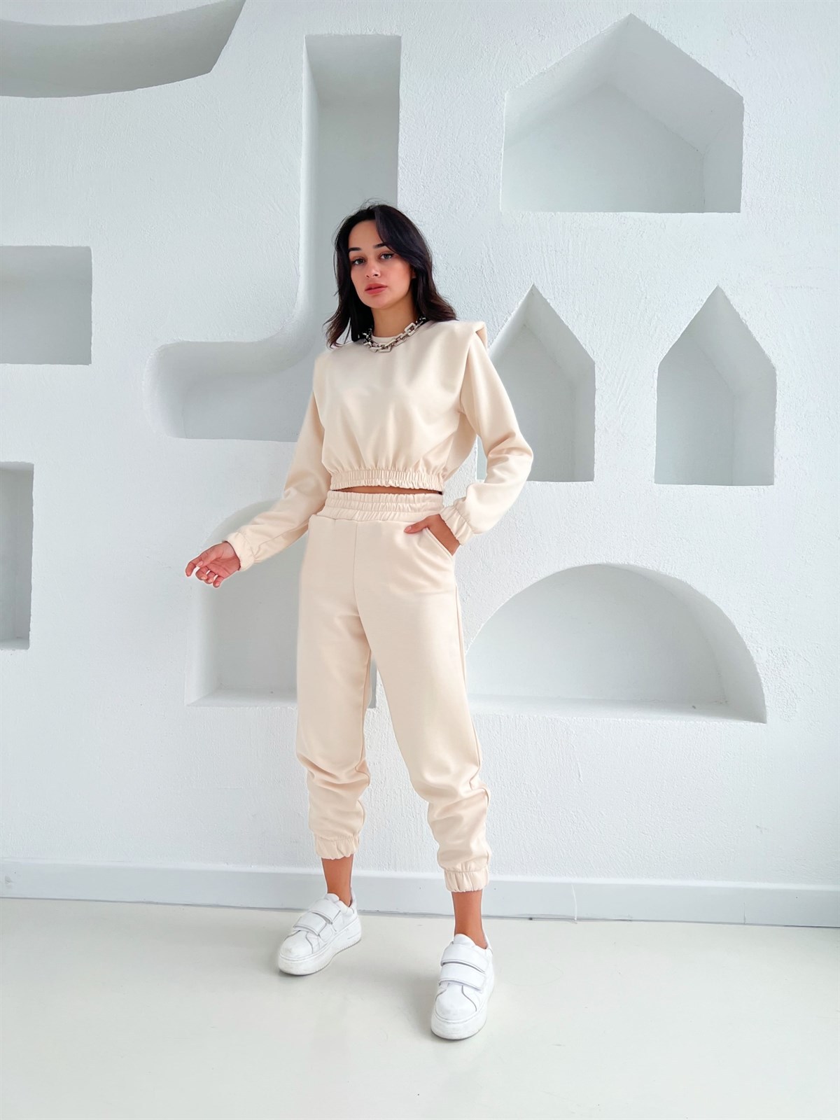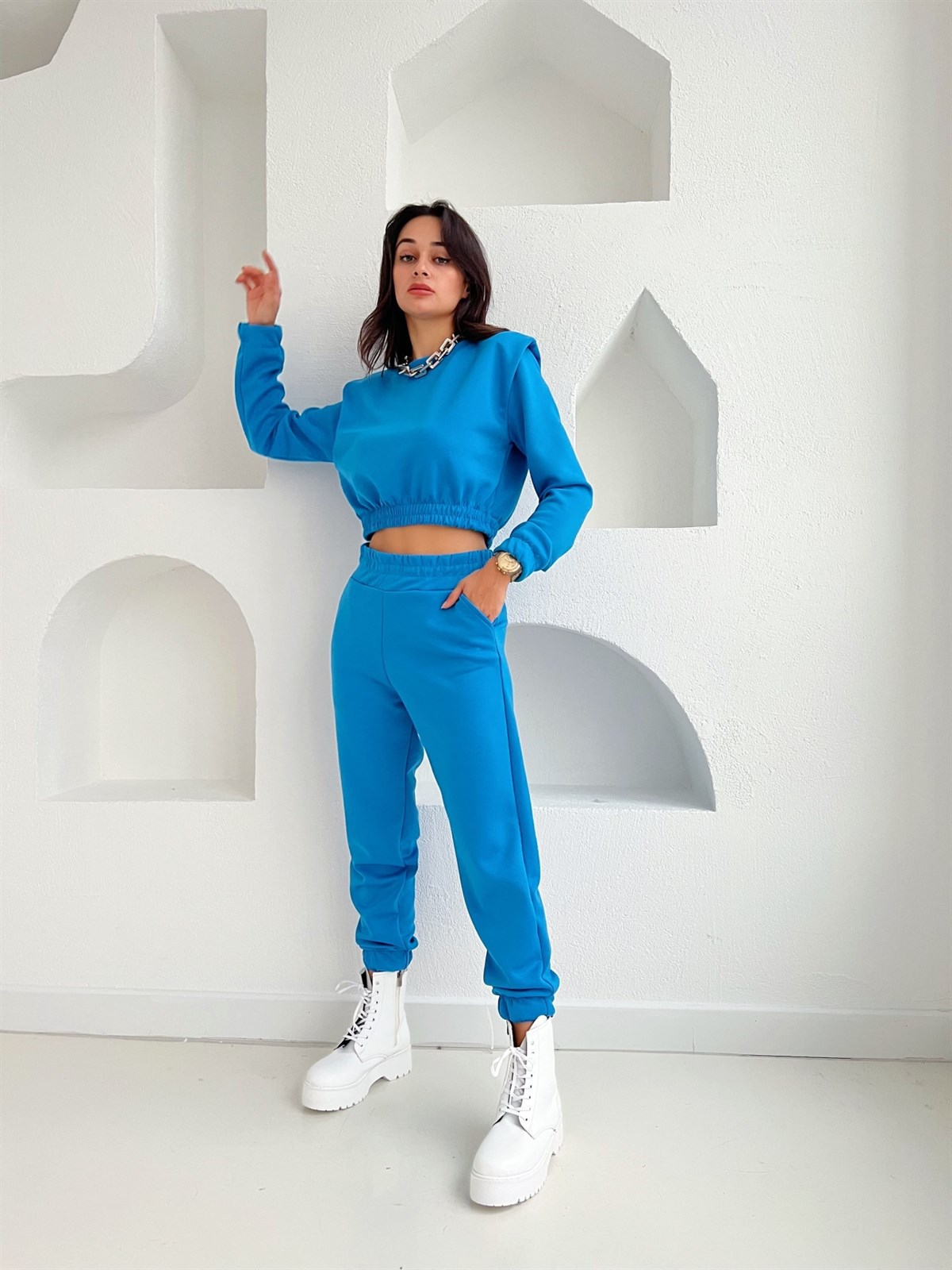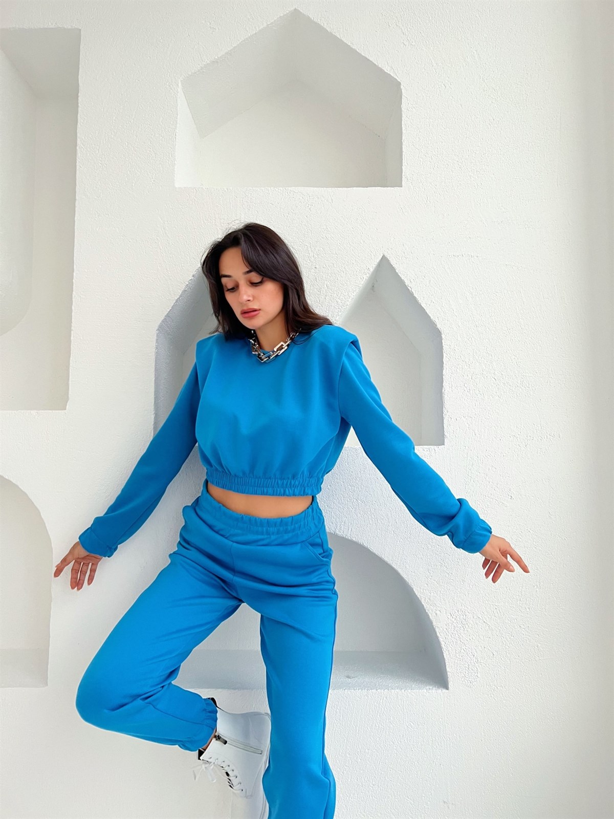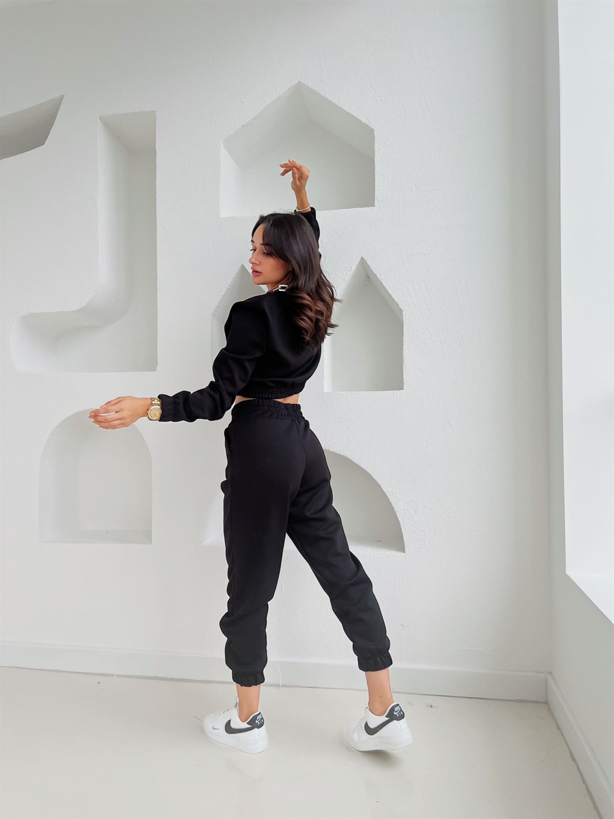Autumn Winter tracksuit set women casual crop top and Elastic waist long pants two piece set Lady solid color pullover top set