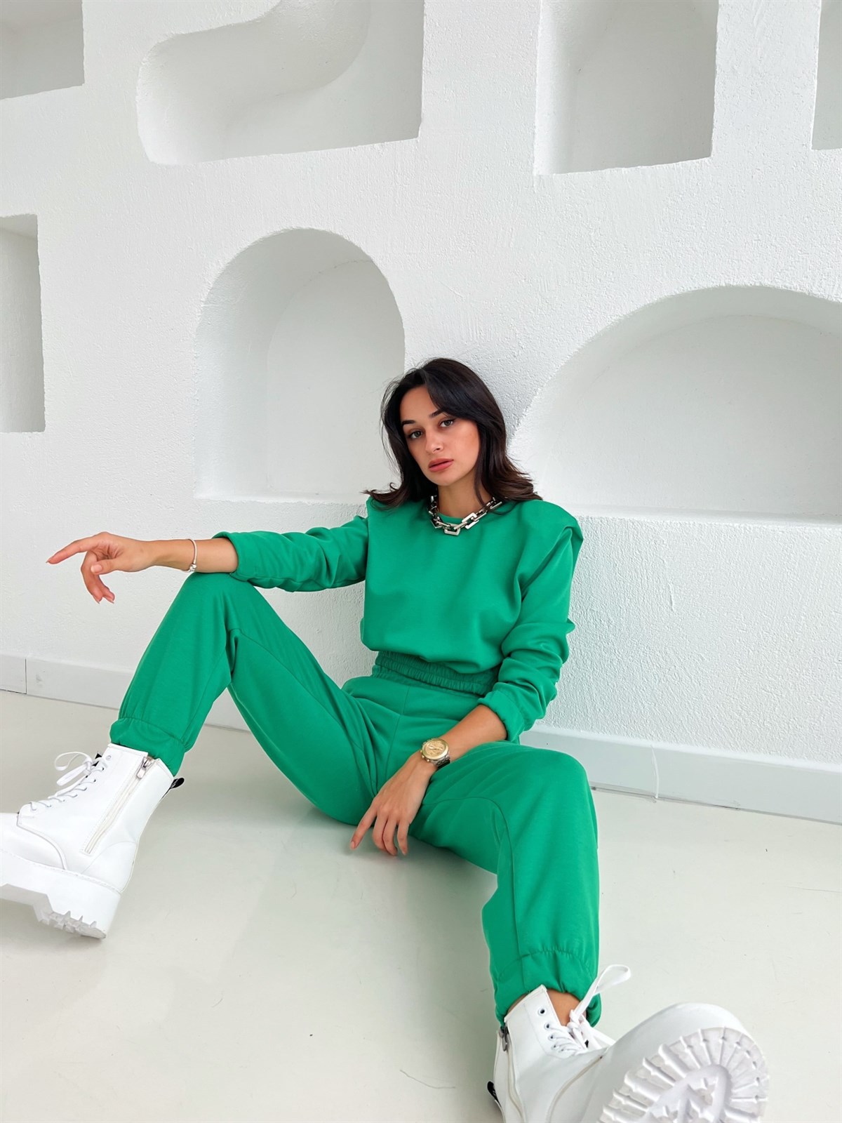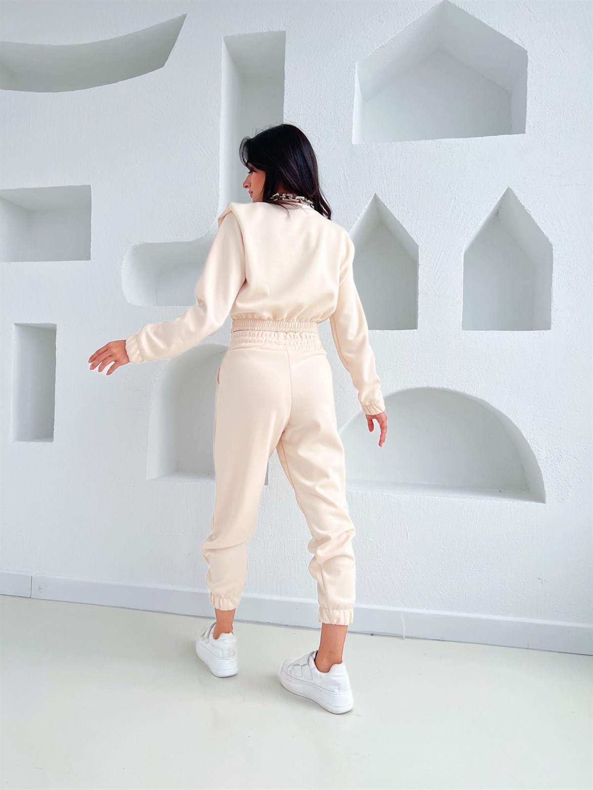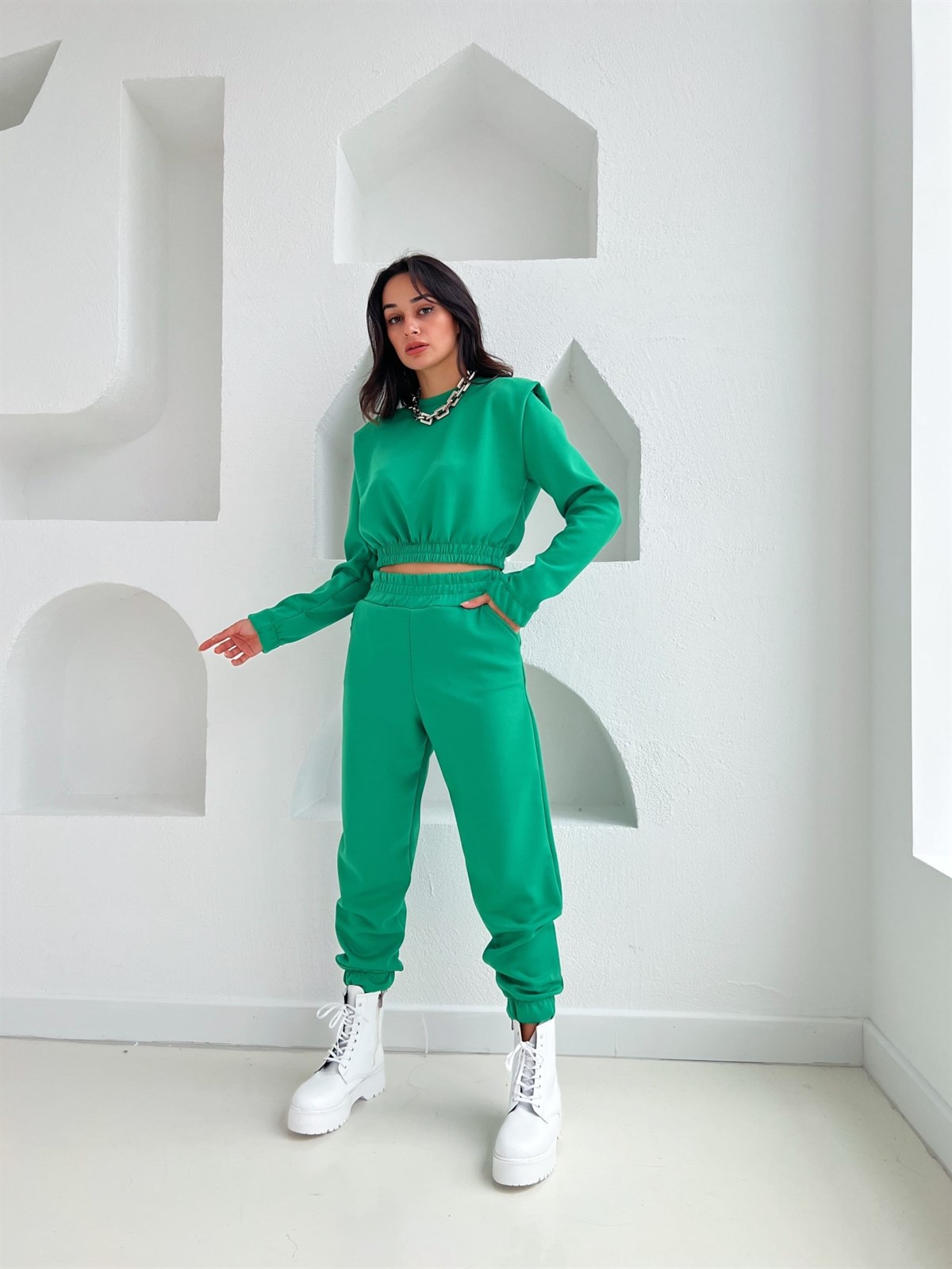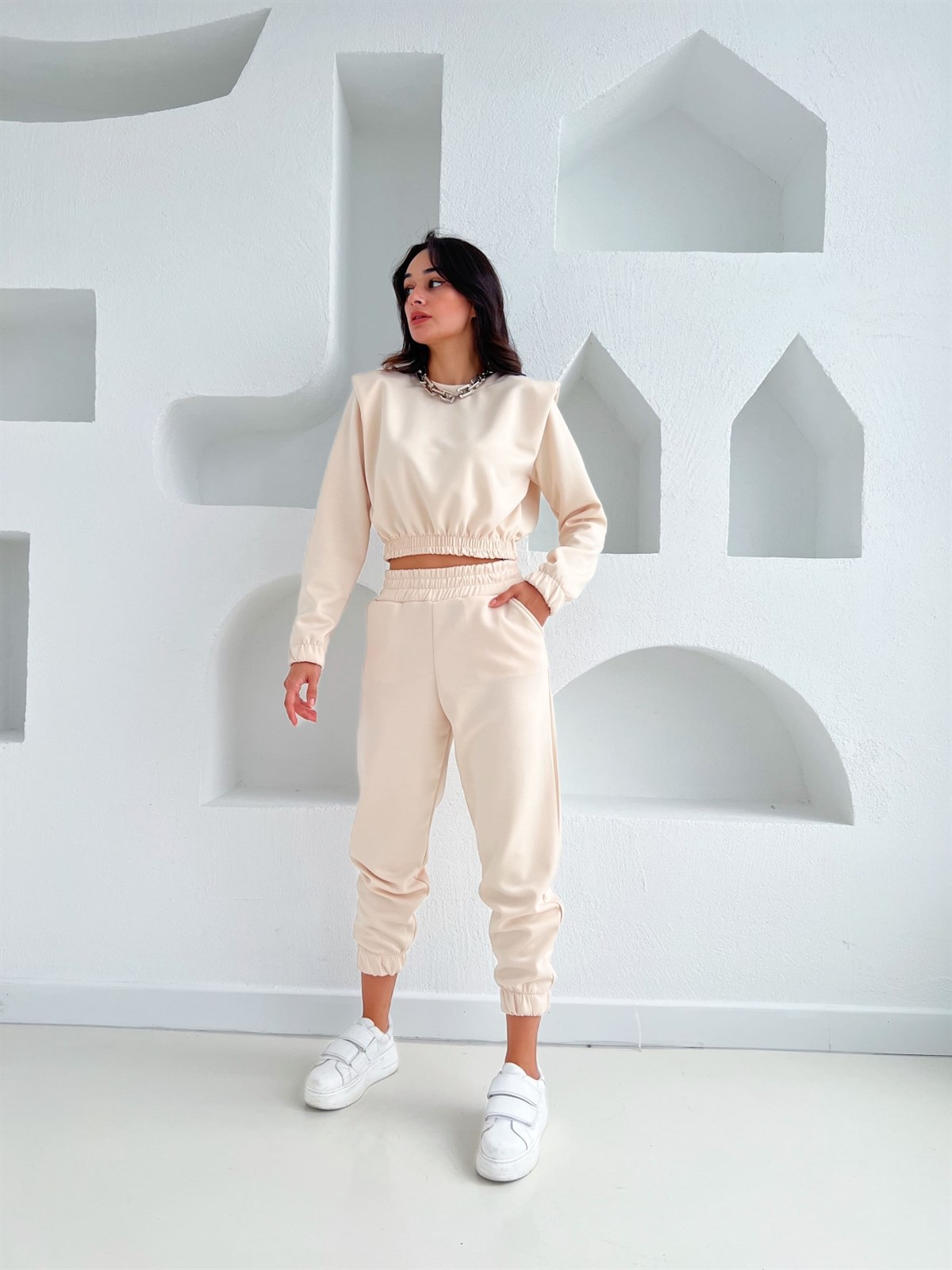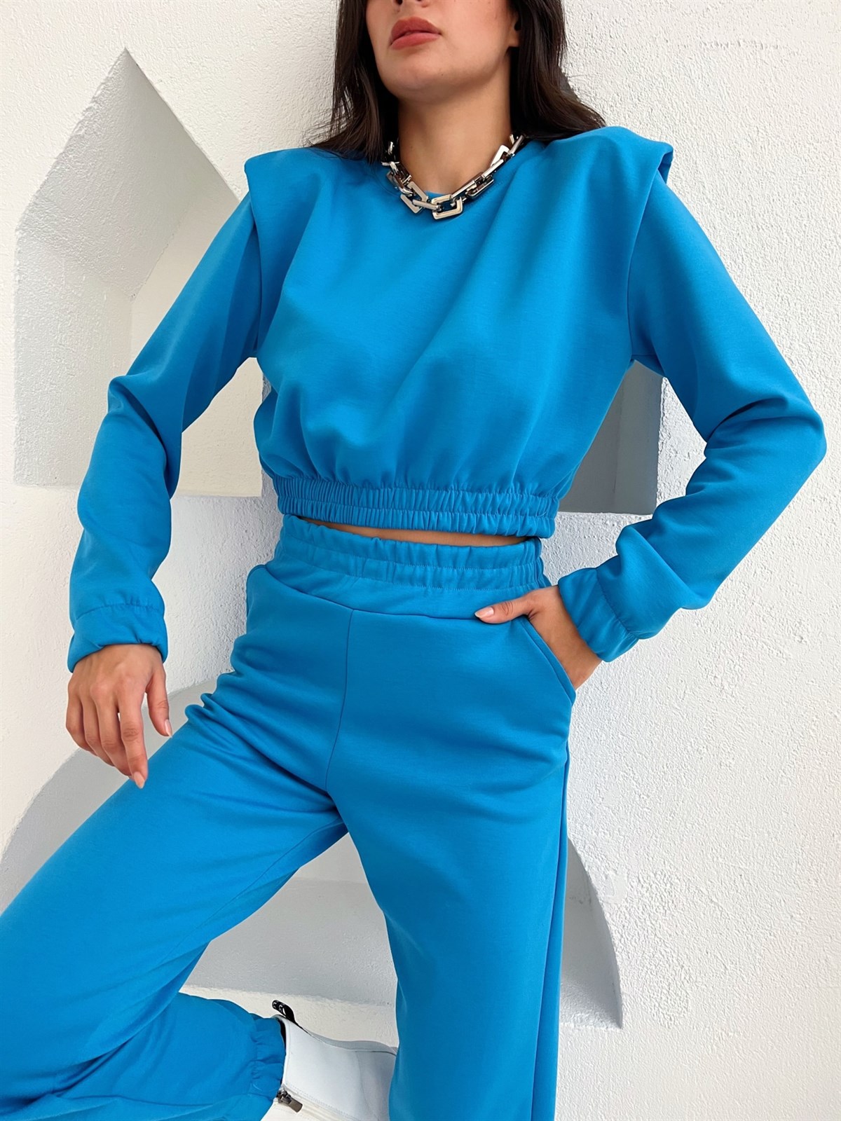 Autumn Winter tracksuit set women casual crop top and Elastic waist long pants two piece set Lady solid color pullover top set