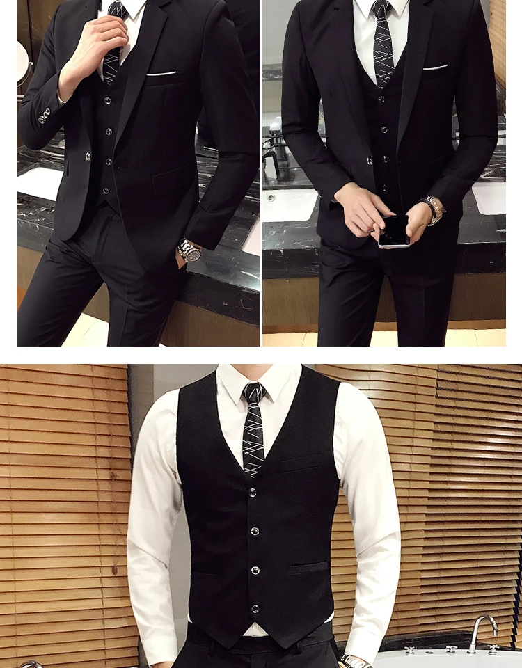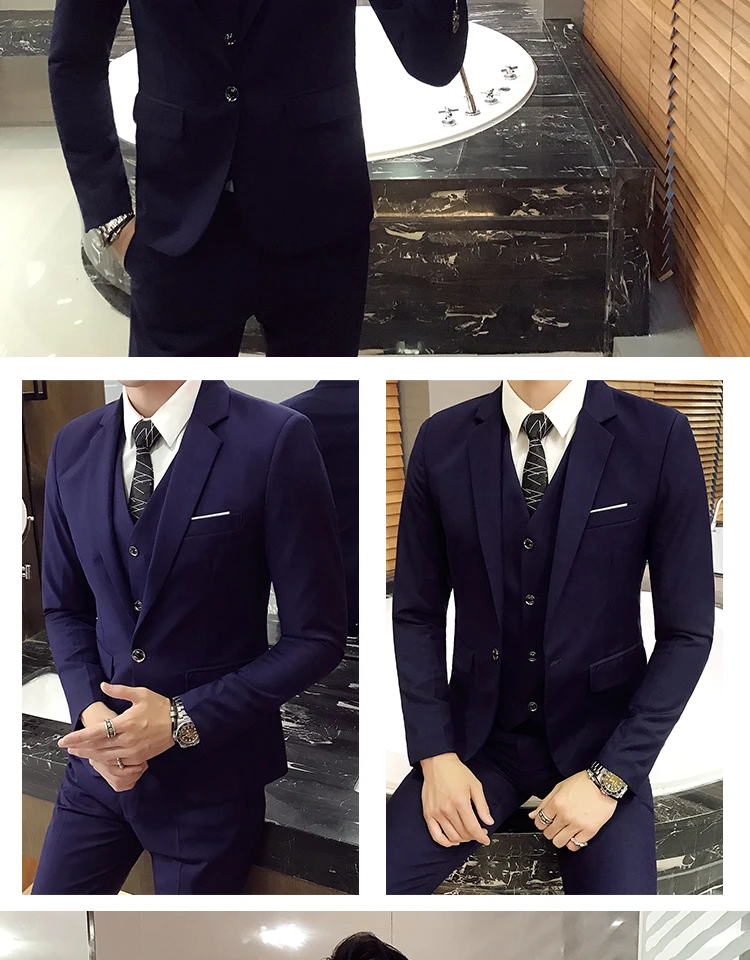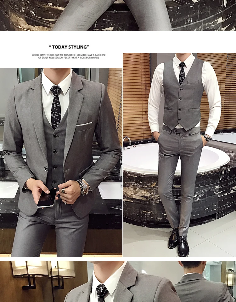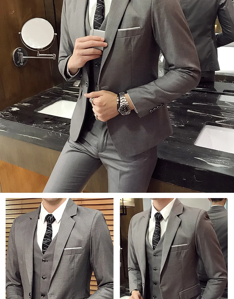 Blazers Pants Vest 3 Pieces Sets / Fashion Men's Casual Boutique Business Wedding Groomsmen Suit Jacket Coat Trousers Waistcoat