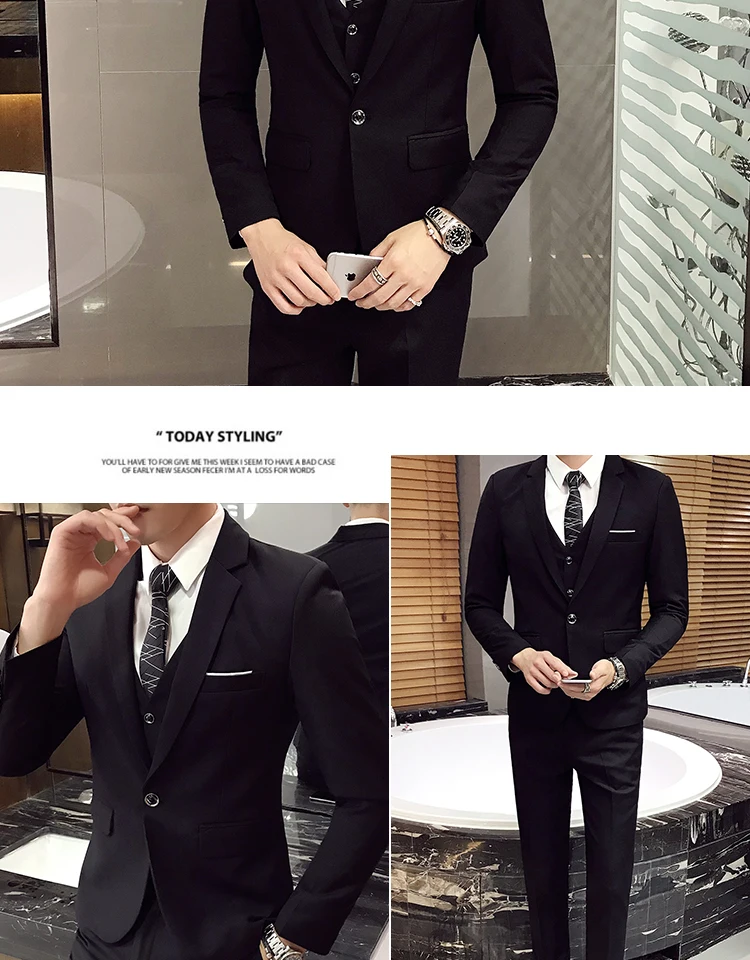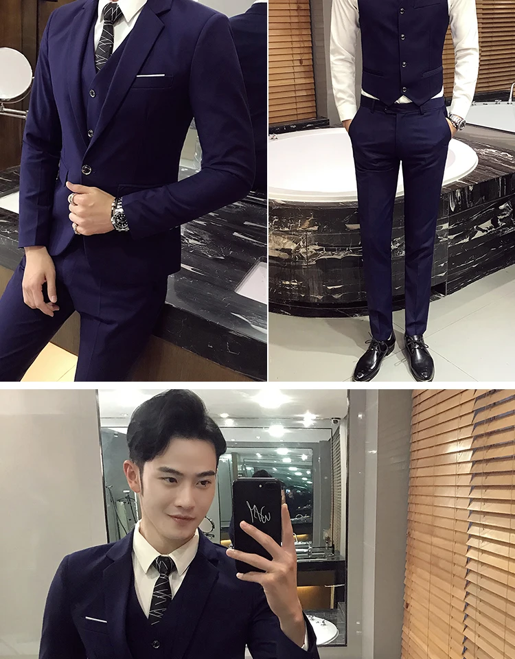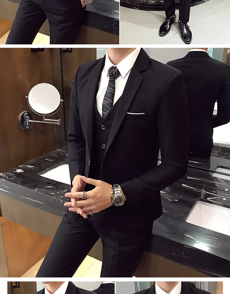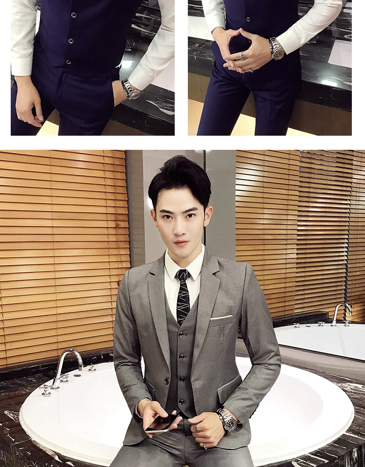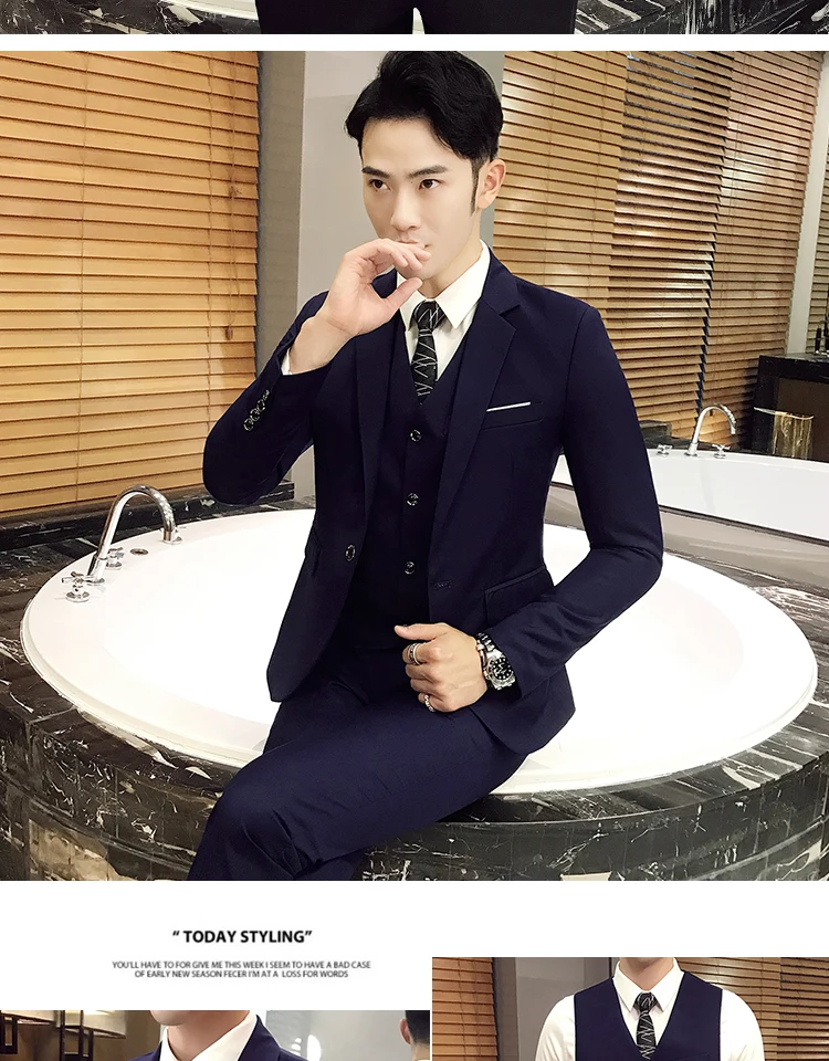 Blazers Pants Vest 3 Pieces Sets / Fashion Men's Casual Boutique Business Wedding Groomsmen Suit Jacket Coat Trousers Waistcoat