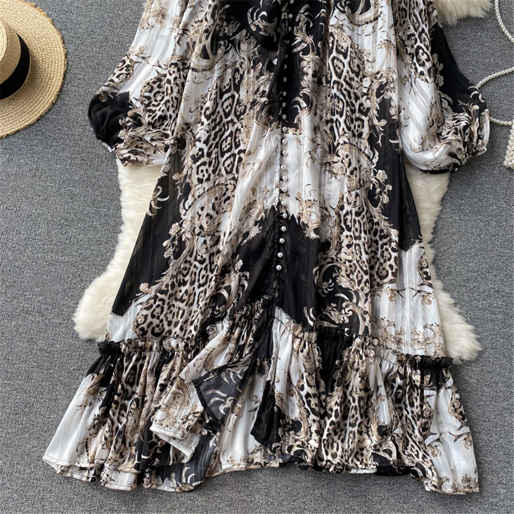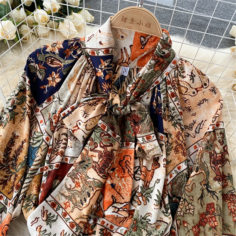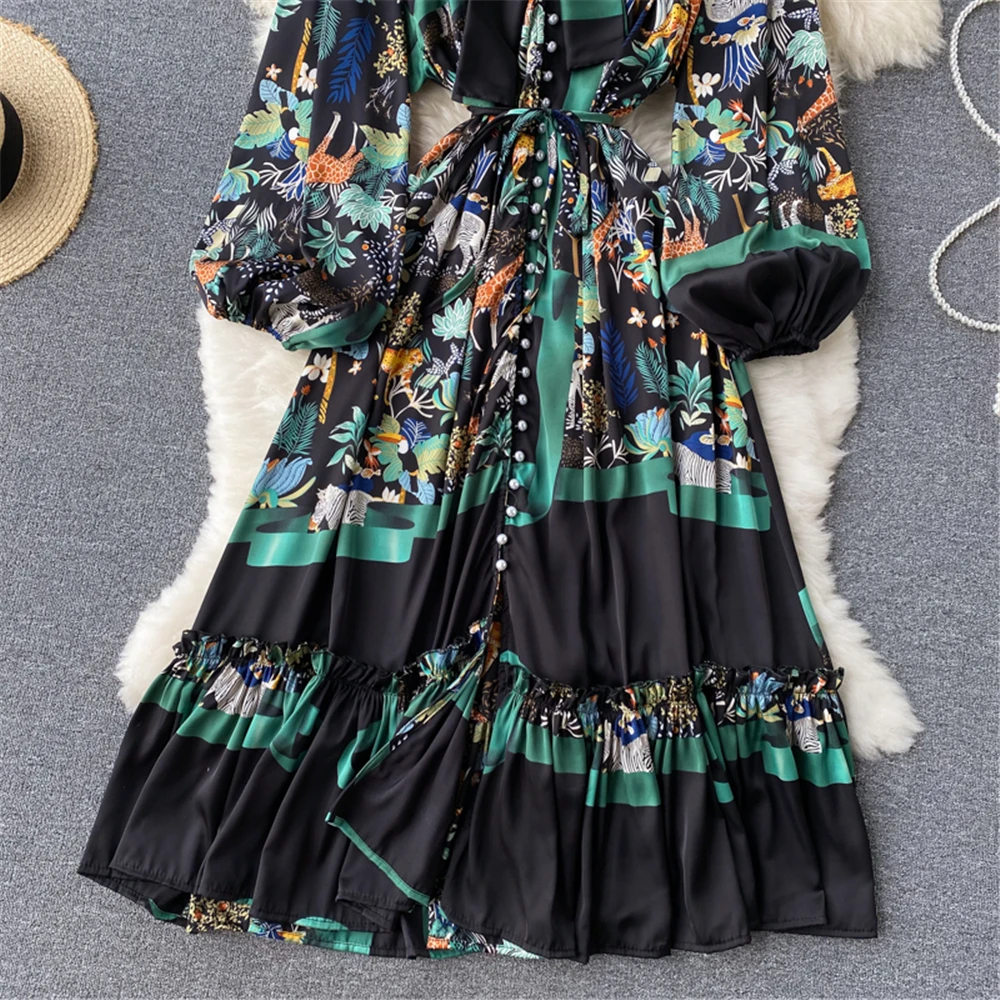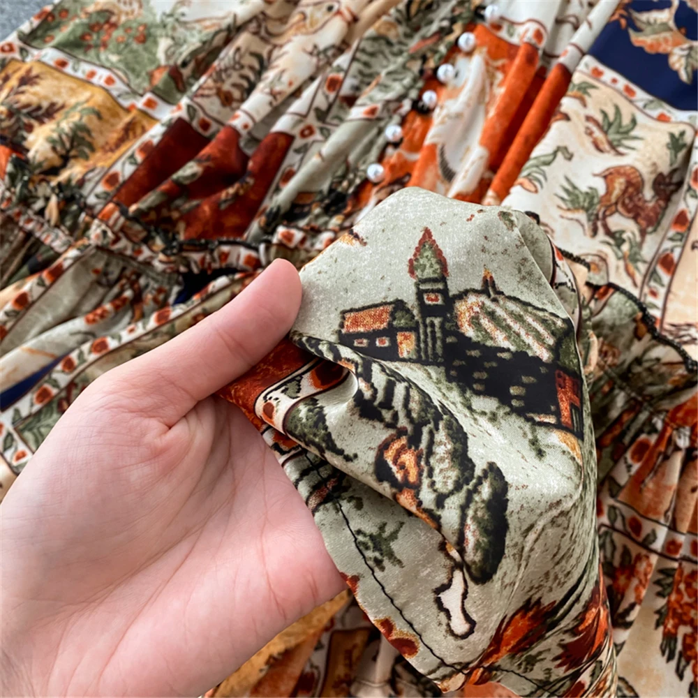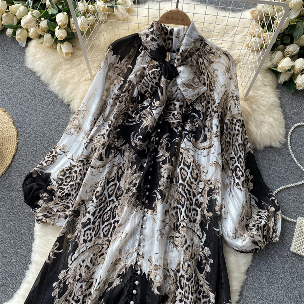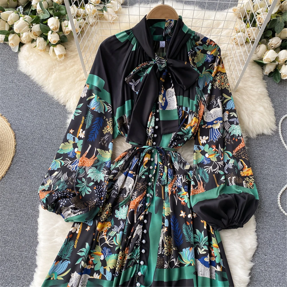 Boho Indie Folk Women Printed Loose Dress Autumn Fashion Bandage Long Sleeve Pleated Dresses Vintage Vestidos Female Clothing