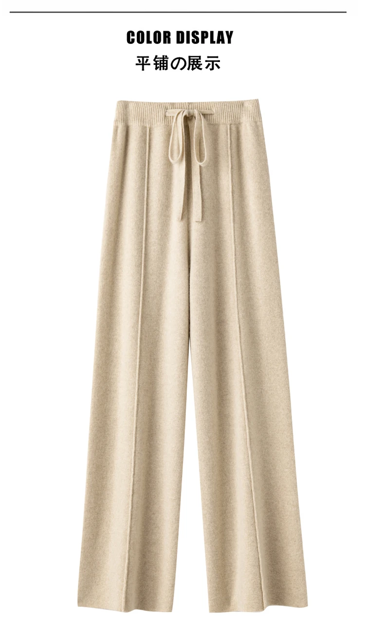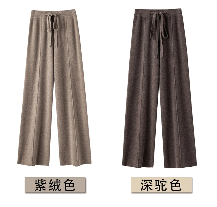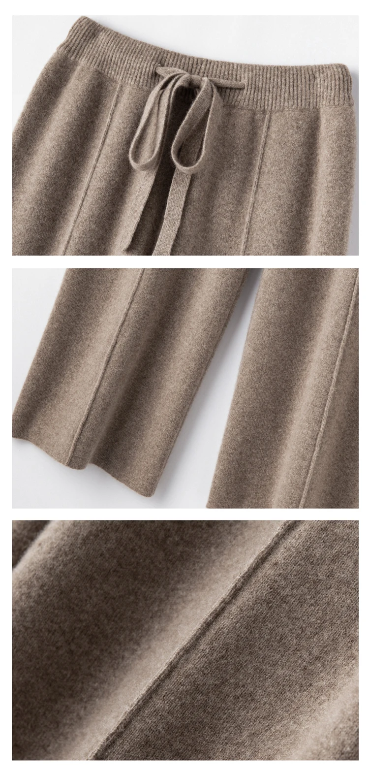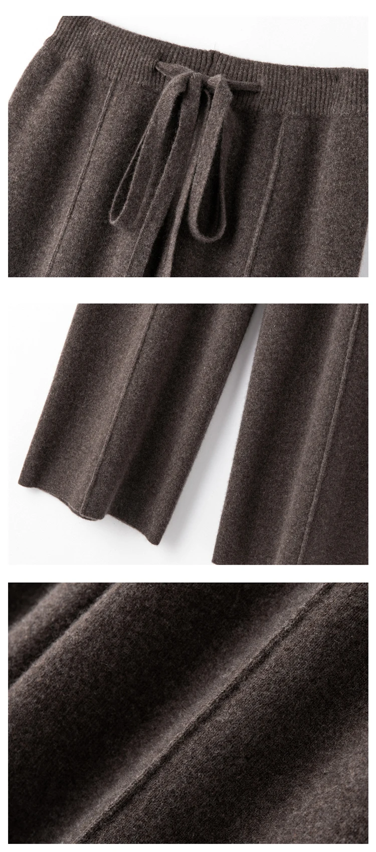 Casual and Comfortable Bestseller Ladies 100% Cashmere Wool Wide Leg Pants Solid Color Ladies Knit Pure Wool Wide Leg Pants New
