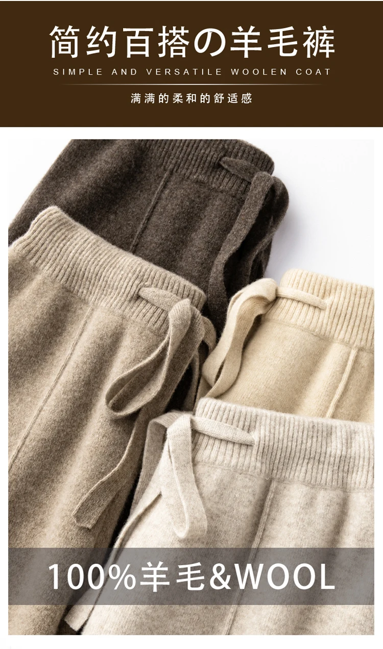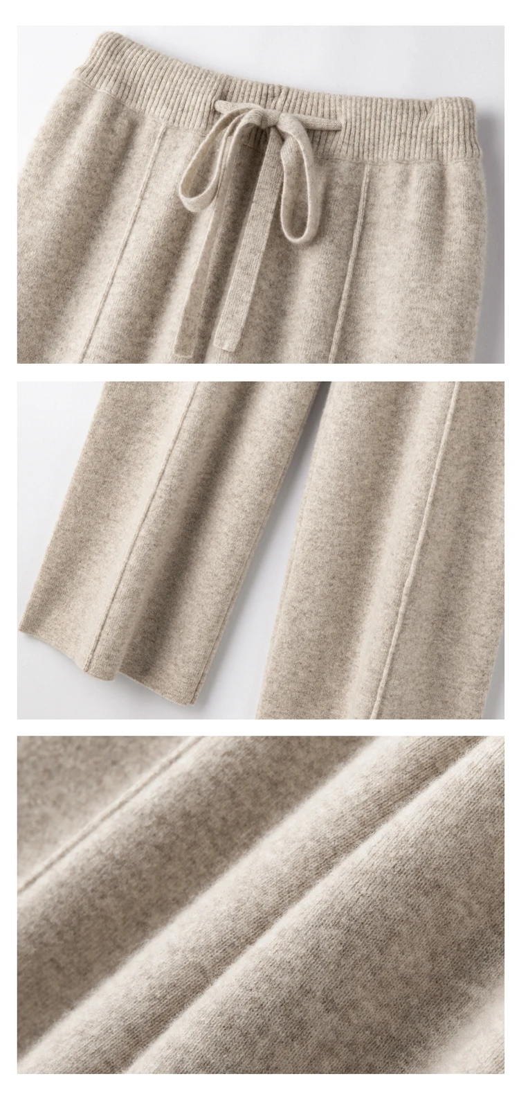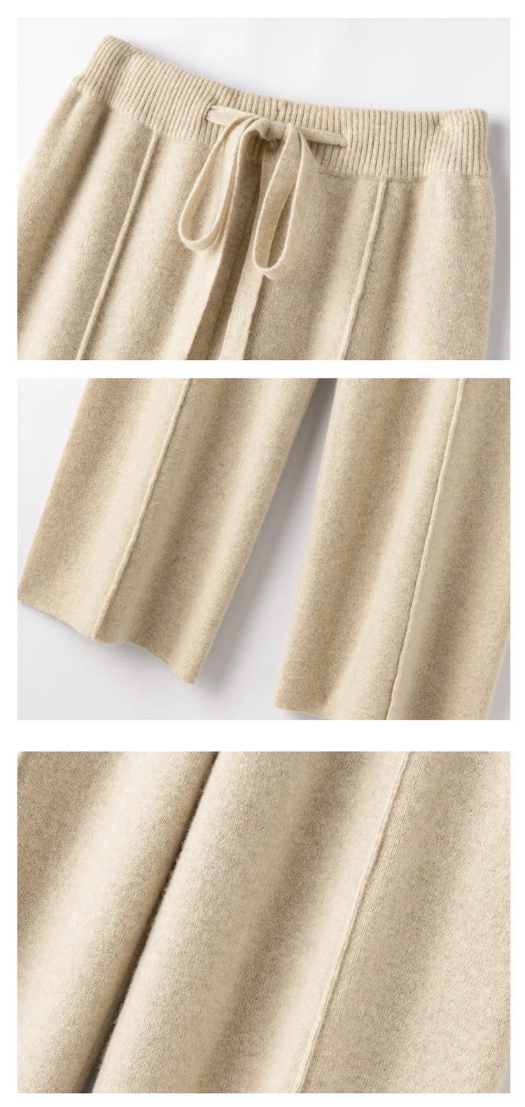Casual and Comfortable Bestseller Ladies 100% Cashmere Wool Wide Leg Pants Solid Color Ladies Knit Pure Wool Wide Leg Pants New