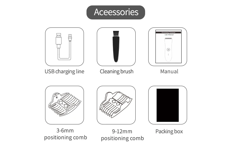 【Ceramic Blade Heads Shaver】 Our pro pubic hair trimmer with ergonomic hand-feel grip and self-sharpening blades to target all body groom areas. The pubic hair clipper for men is equipped with advanced ceramic blades which reduced the risk of cuts, fewer pulled hairs, and skin irritation, and without irritation, redness, and inflammation. Our hair removal trimmer with two guard combs(3mm/6mm) to control the hair length or protect the skin.