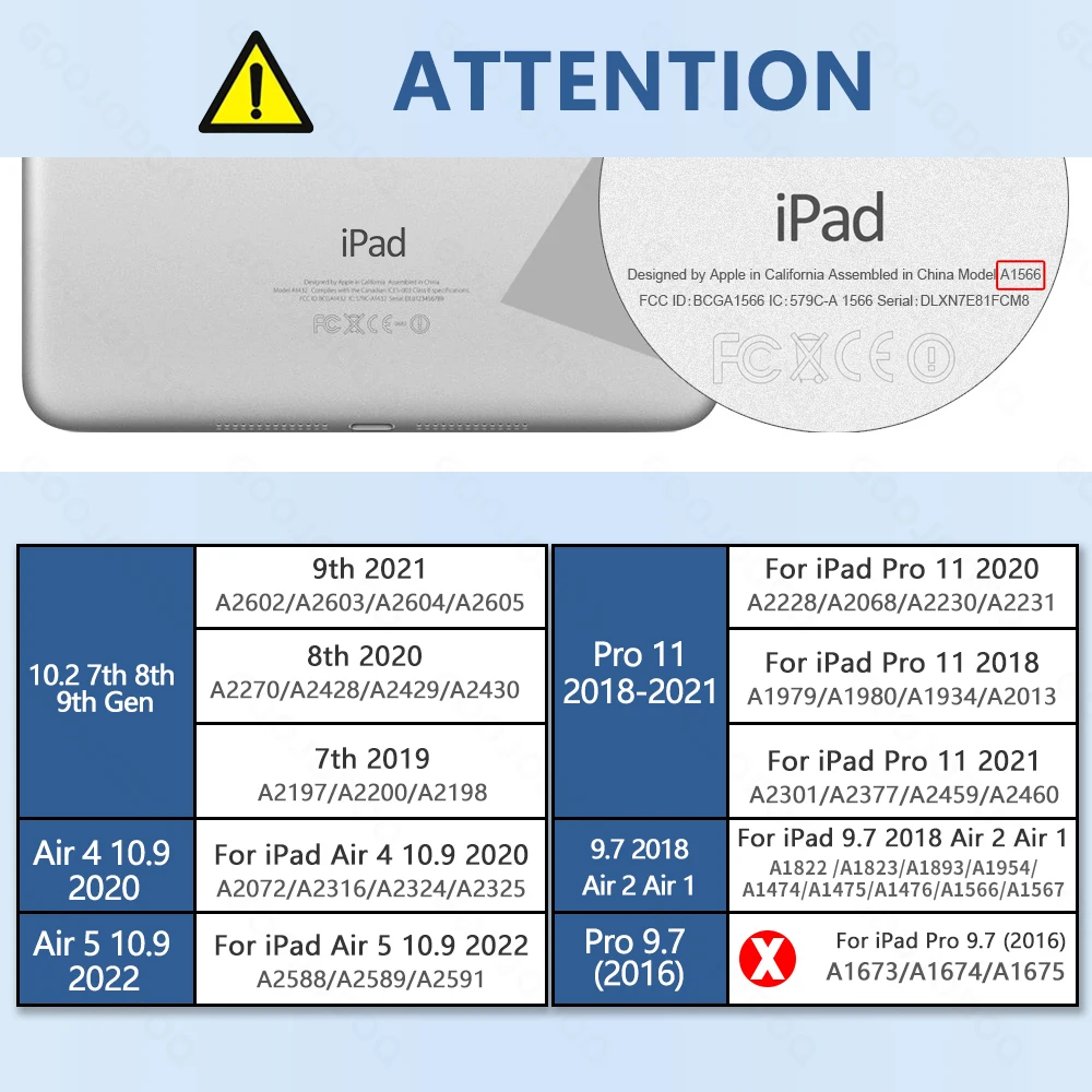 for iPad 9.7 2018 & 2017: A1822/A1823/A1893/A1954