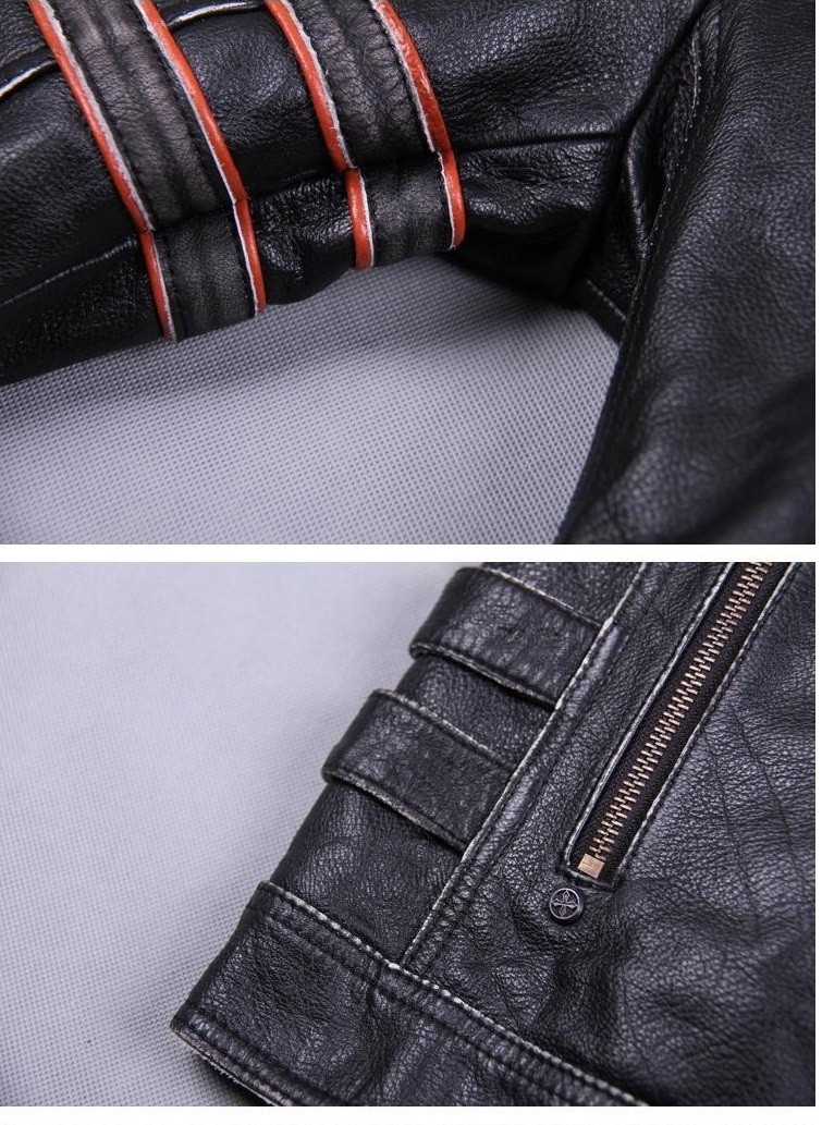 Free shipping.Brand skull cowhide coat.Cool black slim genuine leather jacket,Rider leather cloth.Chaqueta de cuero esqueleto