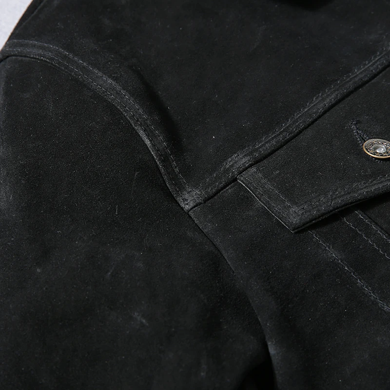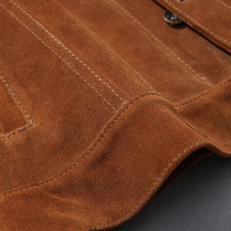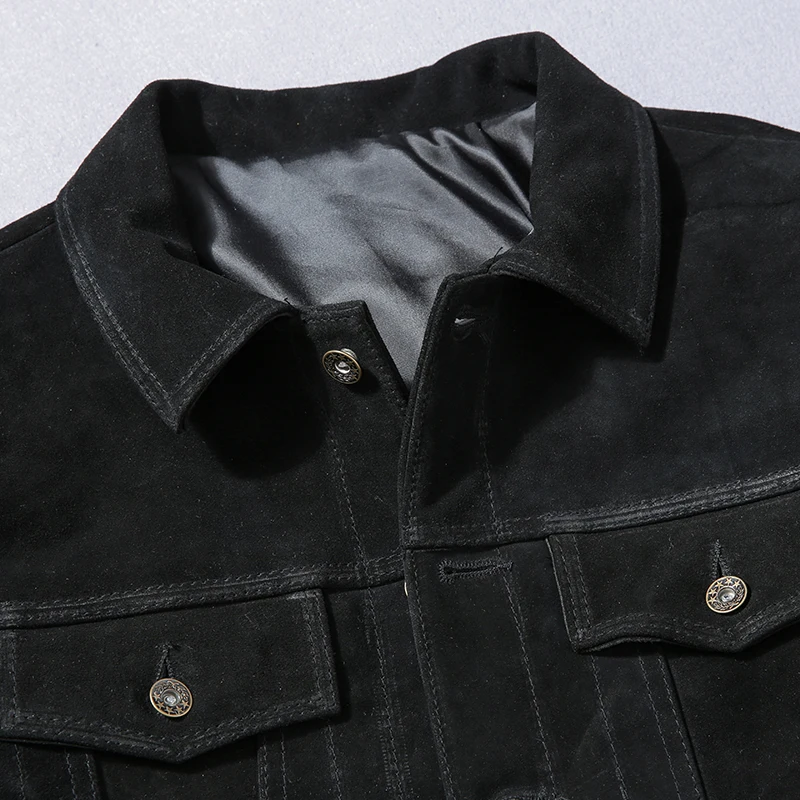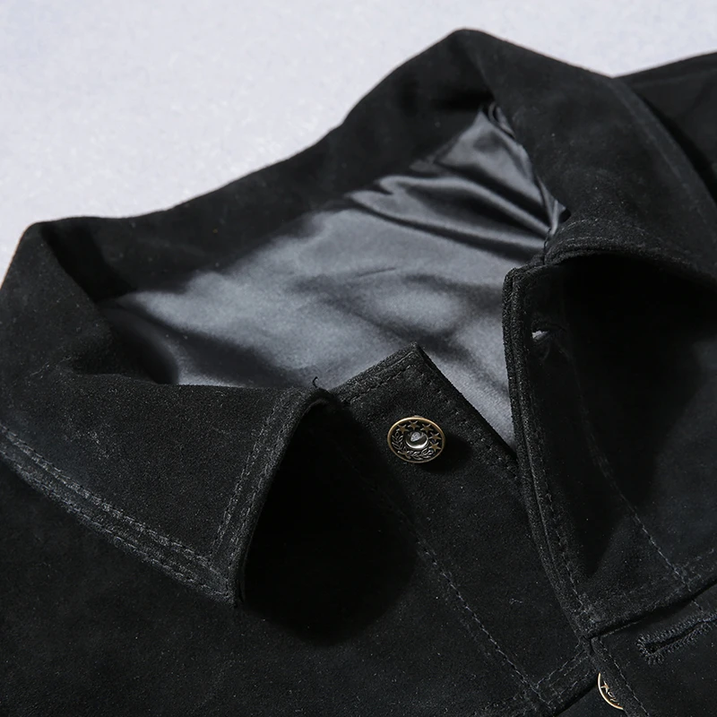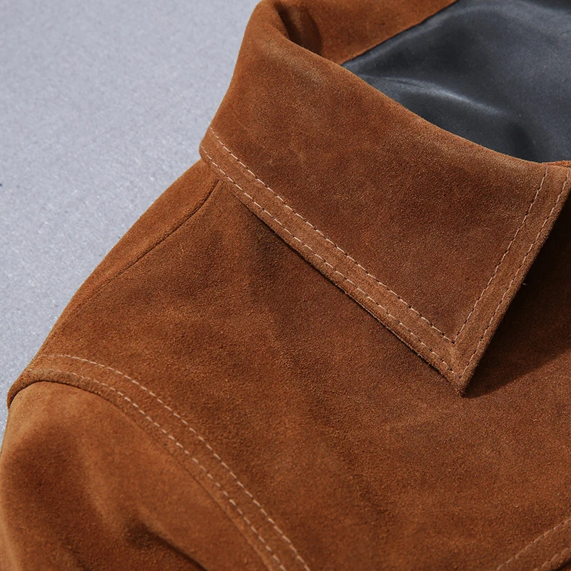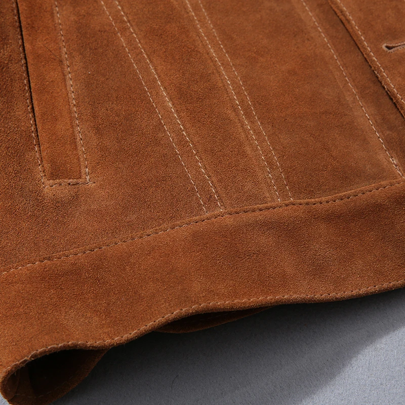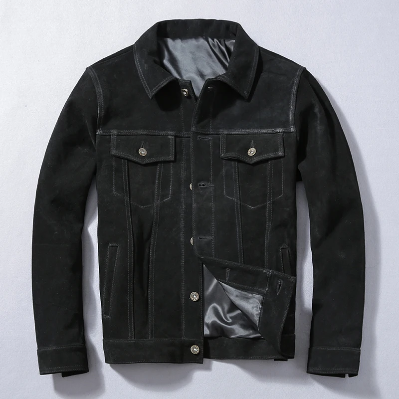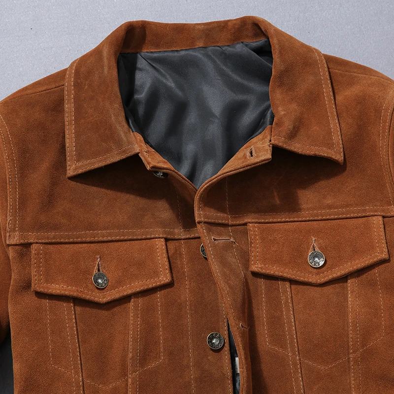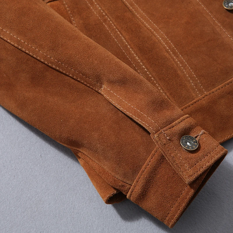 Free shipping.Super Sales.Cheap Suede leather jacket.Classic casual style men cowhide coat.slim genuine leather cloth