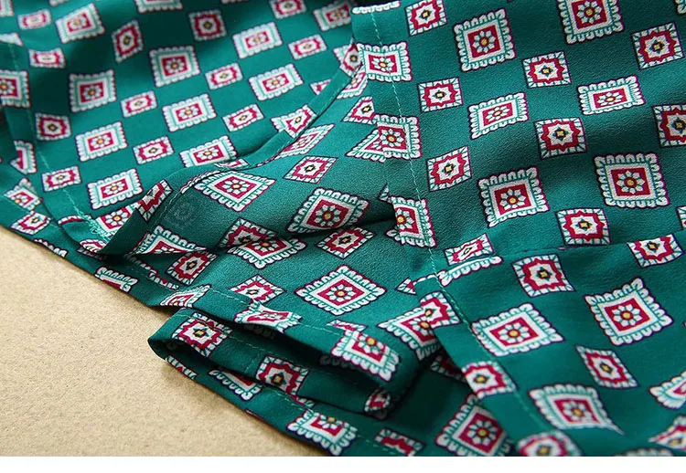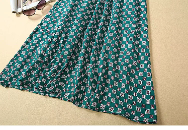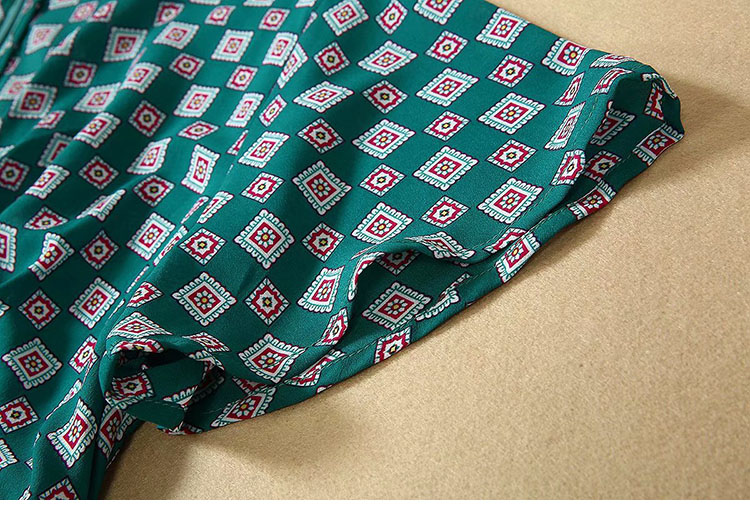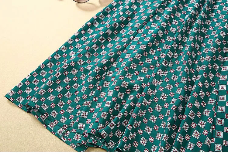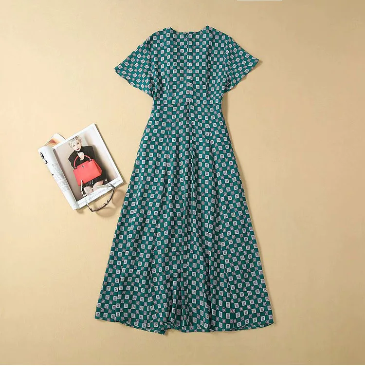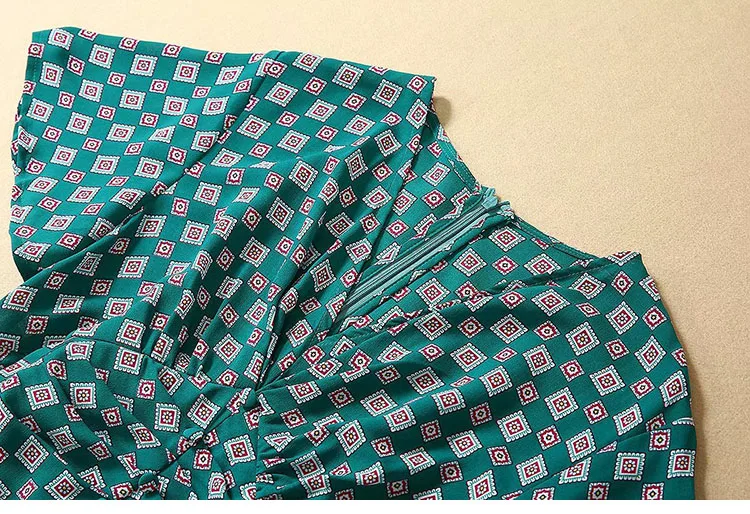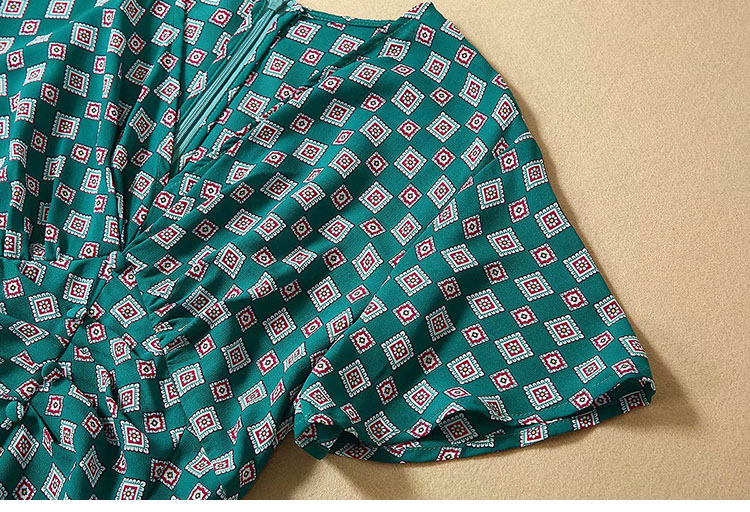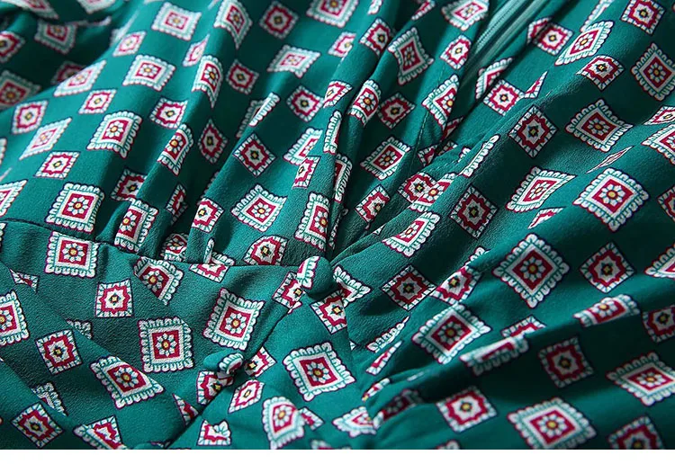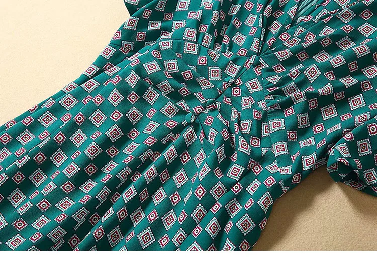 French Style Elegant Women V-neck Green Printed Dress Female's Casual Summer Midi Long Dresses Fashion Office Lady Dress