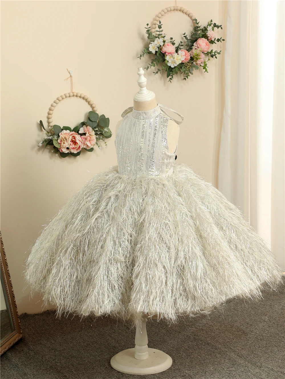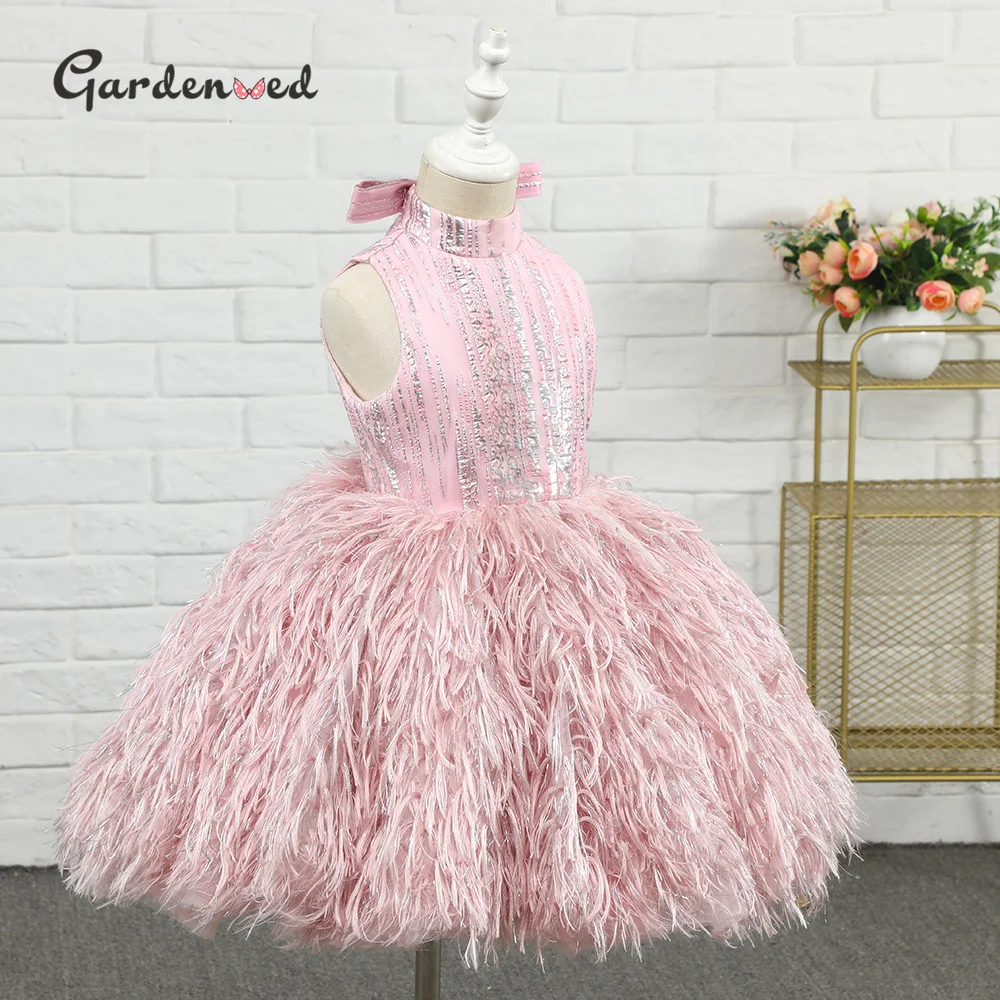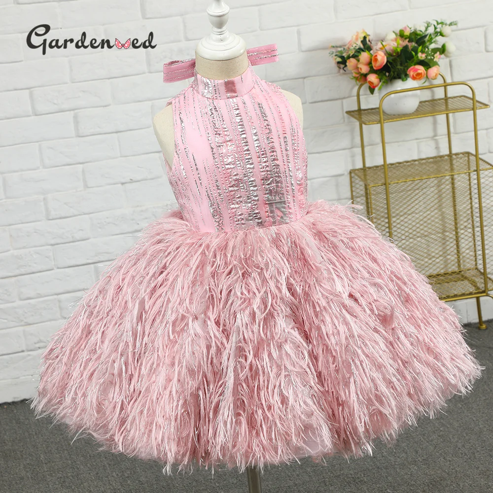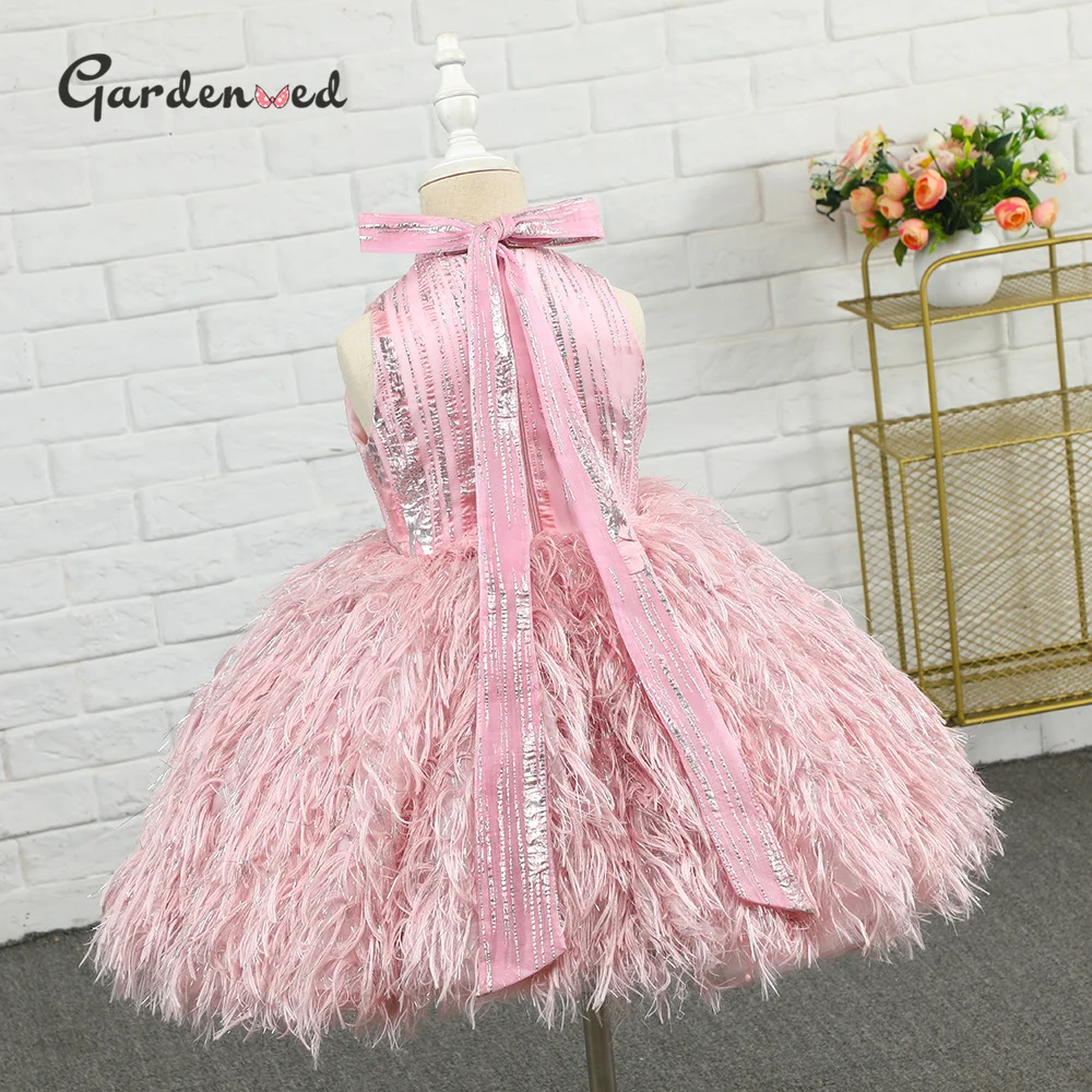 Gardenwed Puffy Princess Dress Luxury Girl Birthday Dress Feather Flower Girl Dress Child Dress First Communion Baby Girl Gown