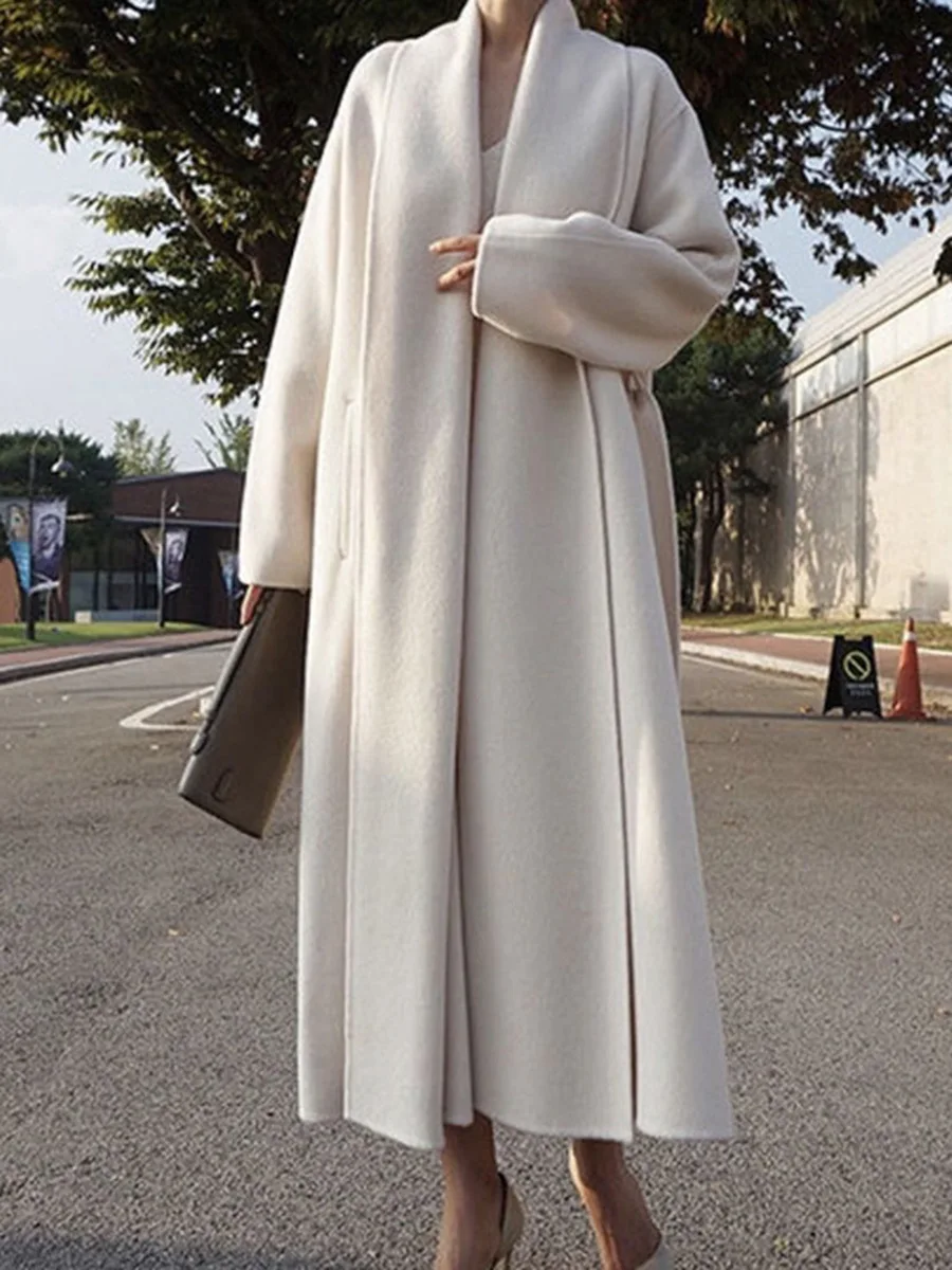 GetSpring Women Wool Coat Temperament Elegant Simple Winter Woolen Jacket All Match Loose Long Overcoat Autumn All Match 2022