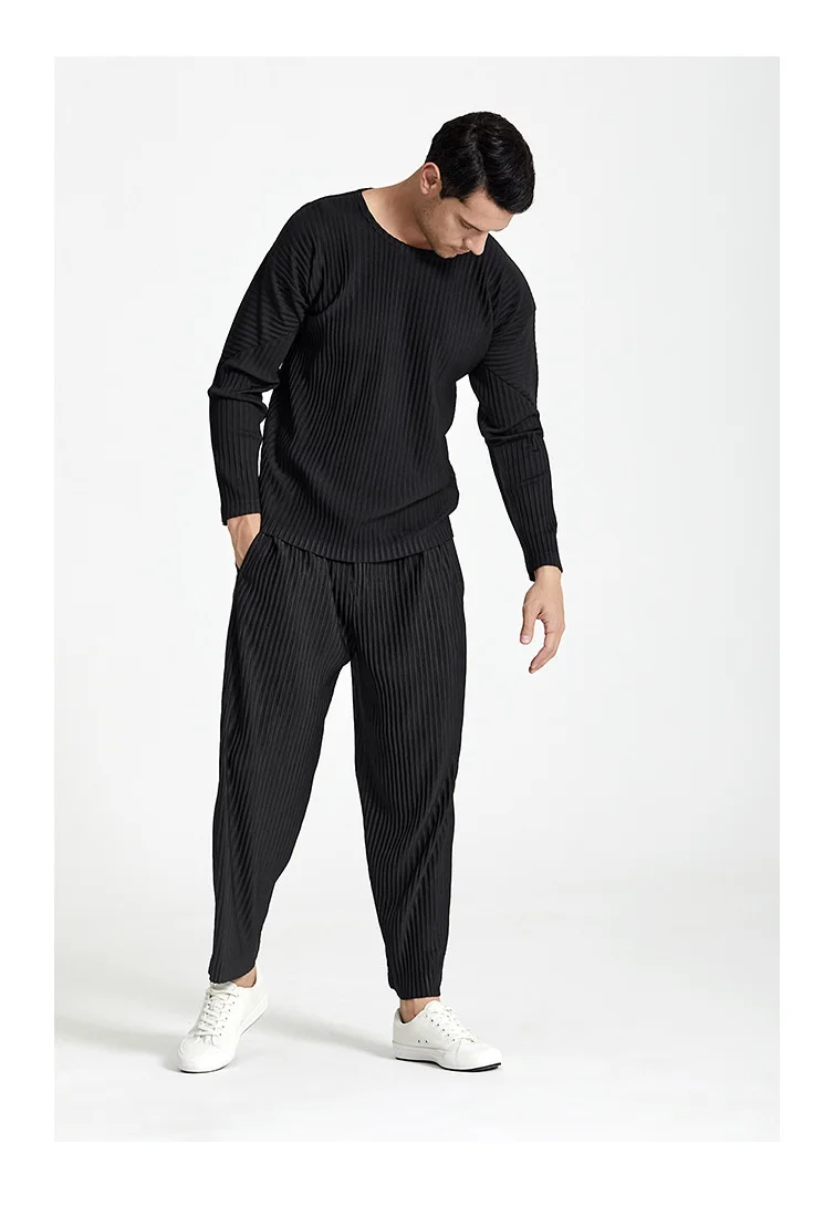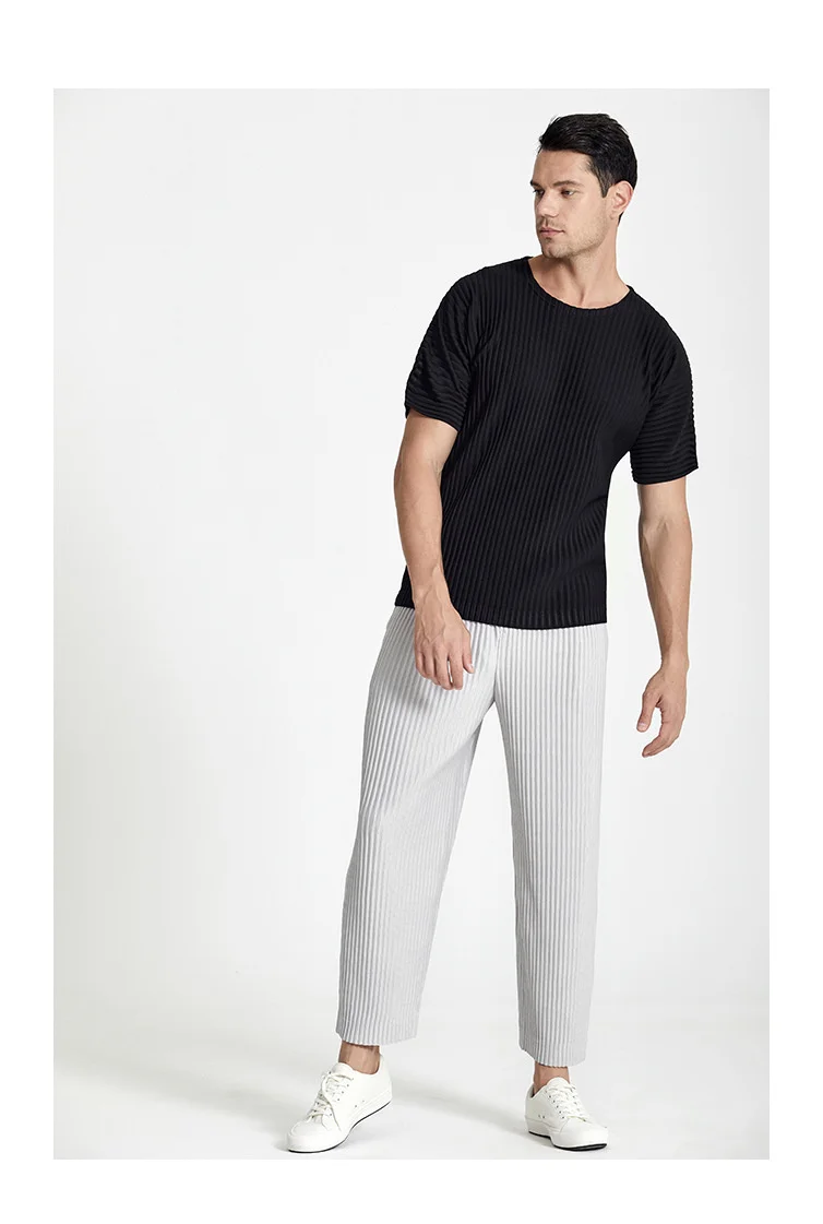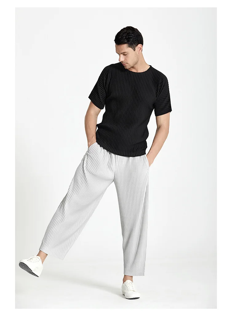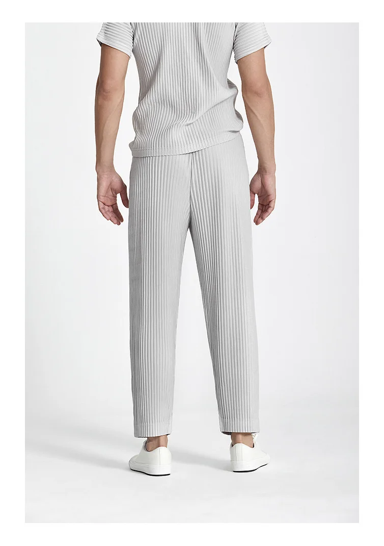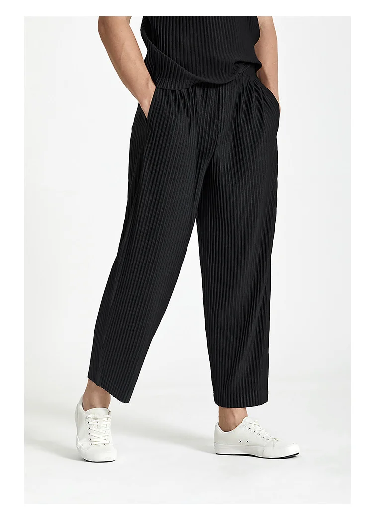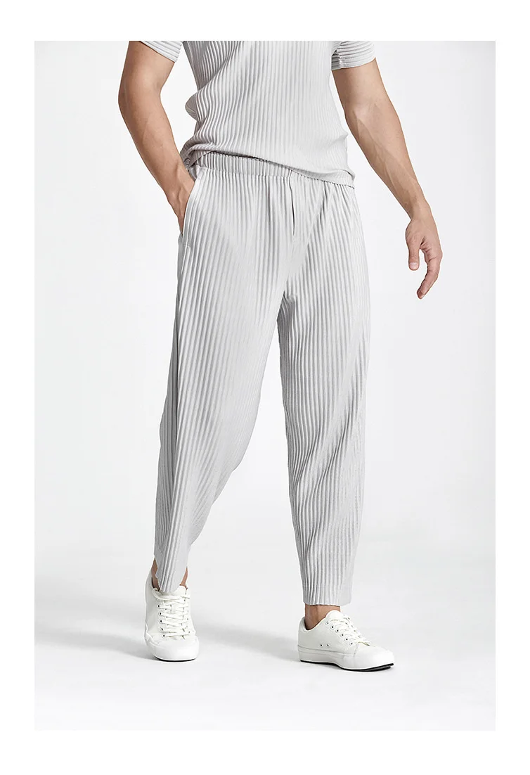IEFB Japanese Streetwear Fashion Pleated Men's Casual Pants New Loose fitHigh Elastic Straight Pants For Summer 2023