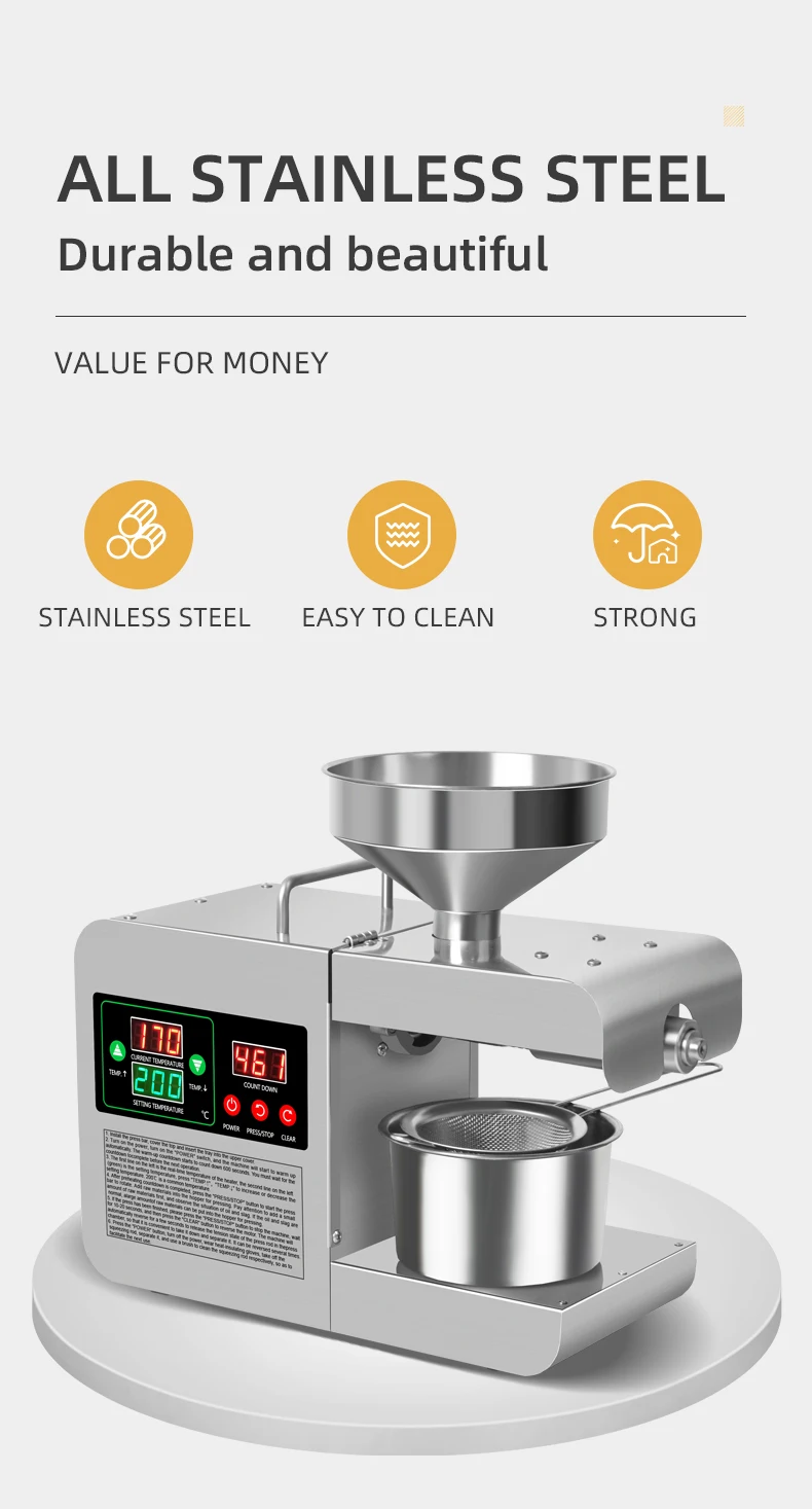 Intelligent Oil Press Automatic Household Stainless Steel Hot Cold Oil Extraction Machine Temperature Control Sesame Oil Peanut