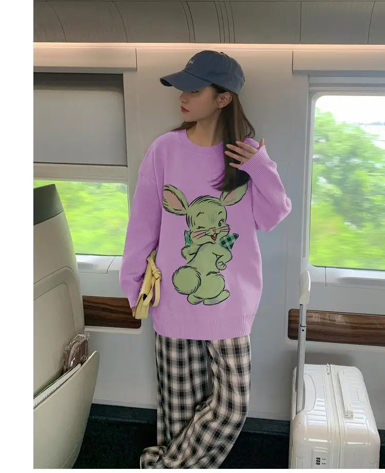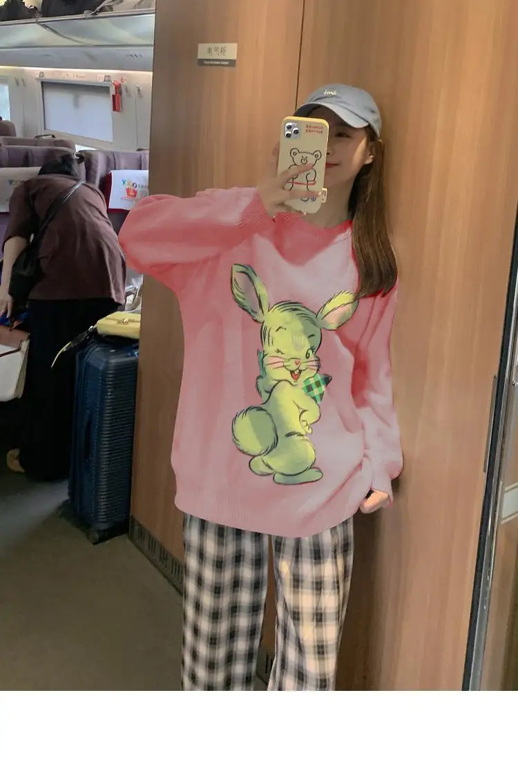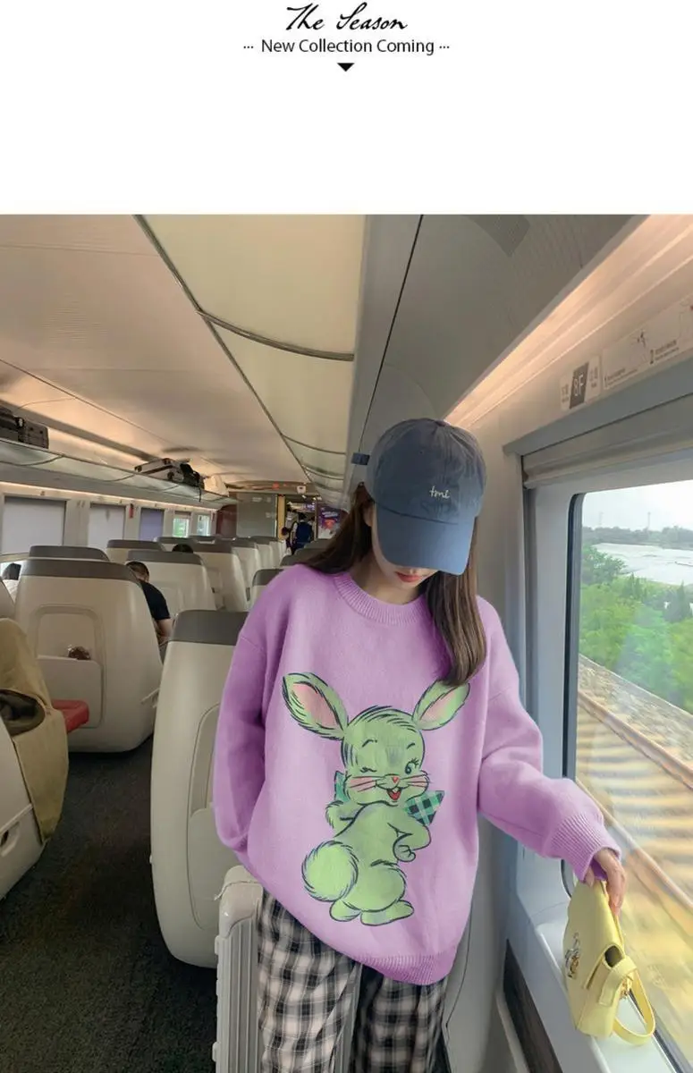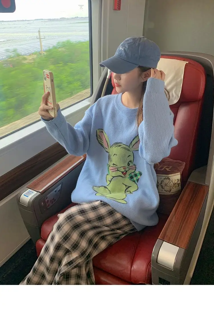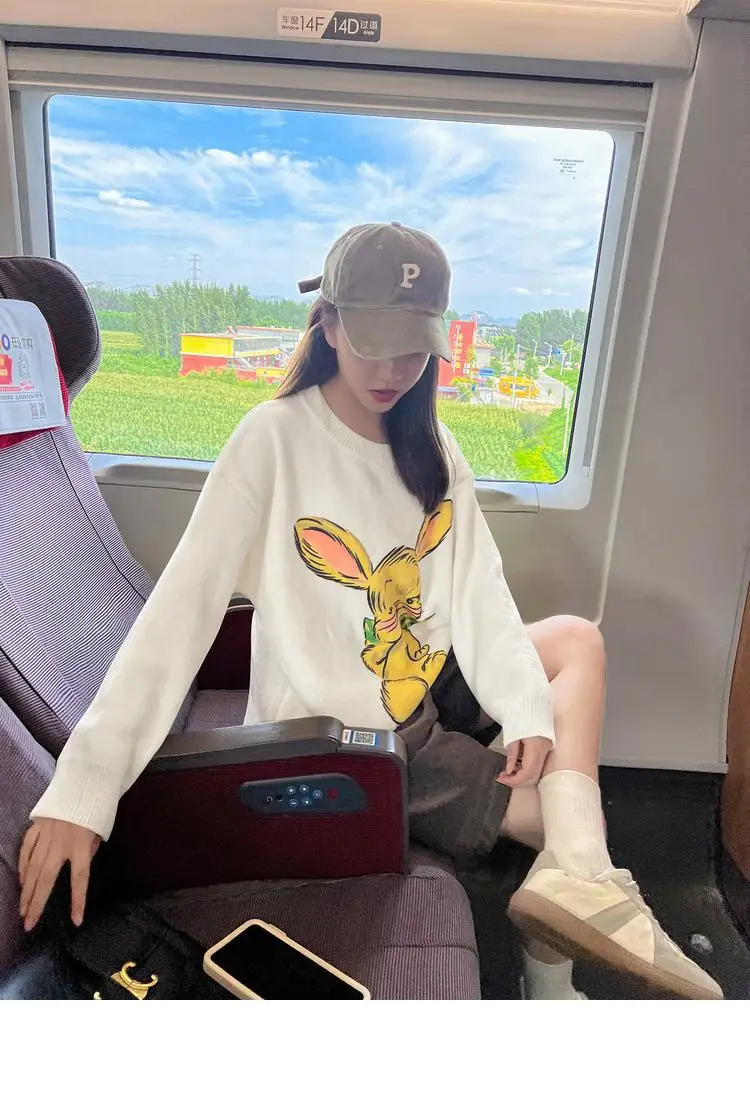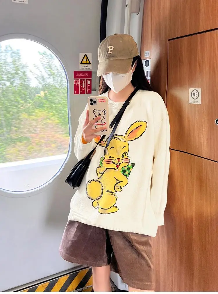 Korean Style Cute White Rabbit Fairy Grunge Sweater Casual Loose Pullover Autumn Vintage Harajuku Women Goth Sweater Y2k Top