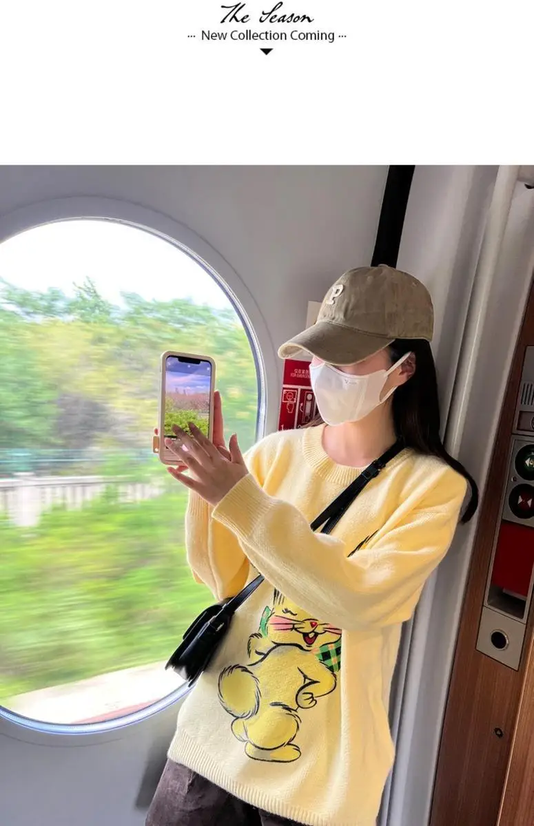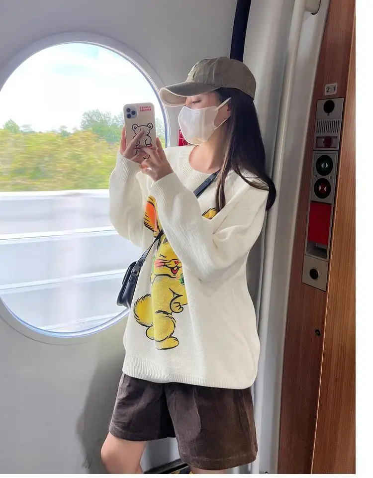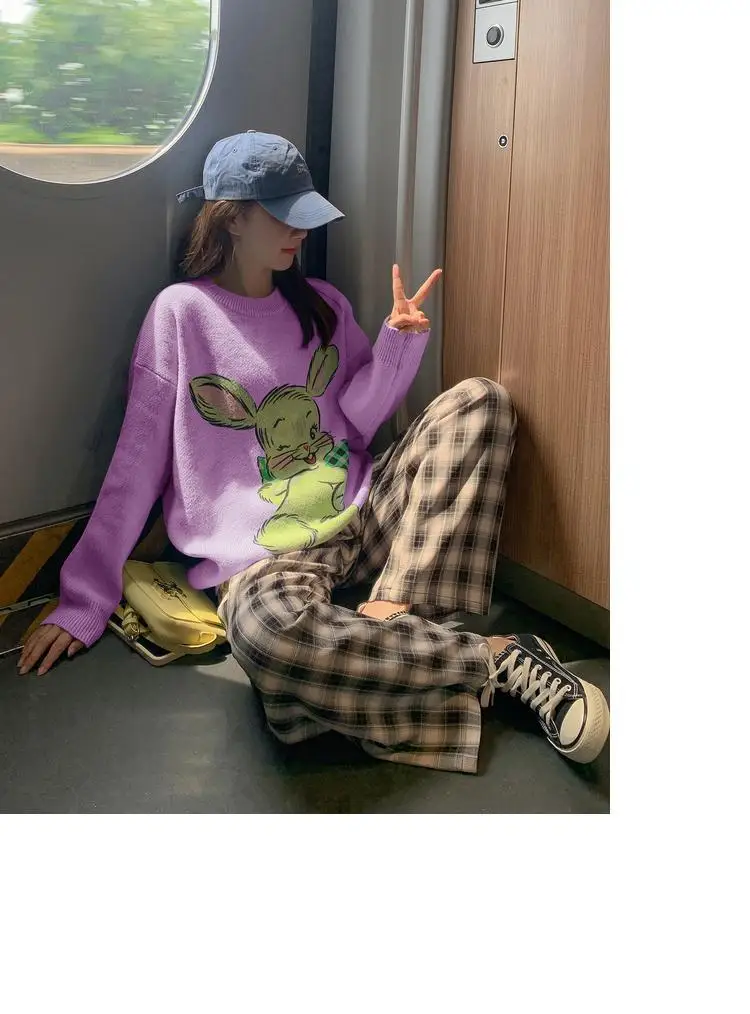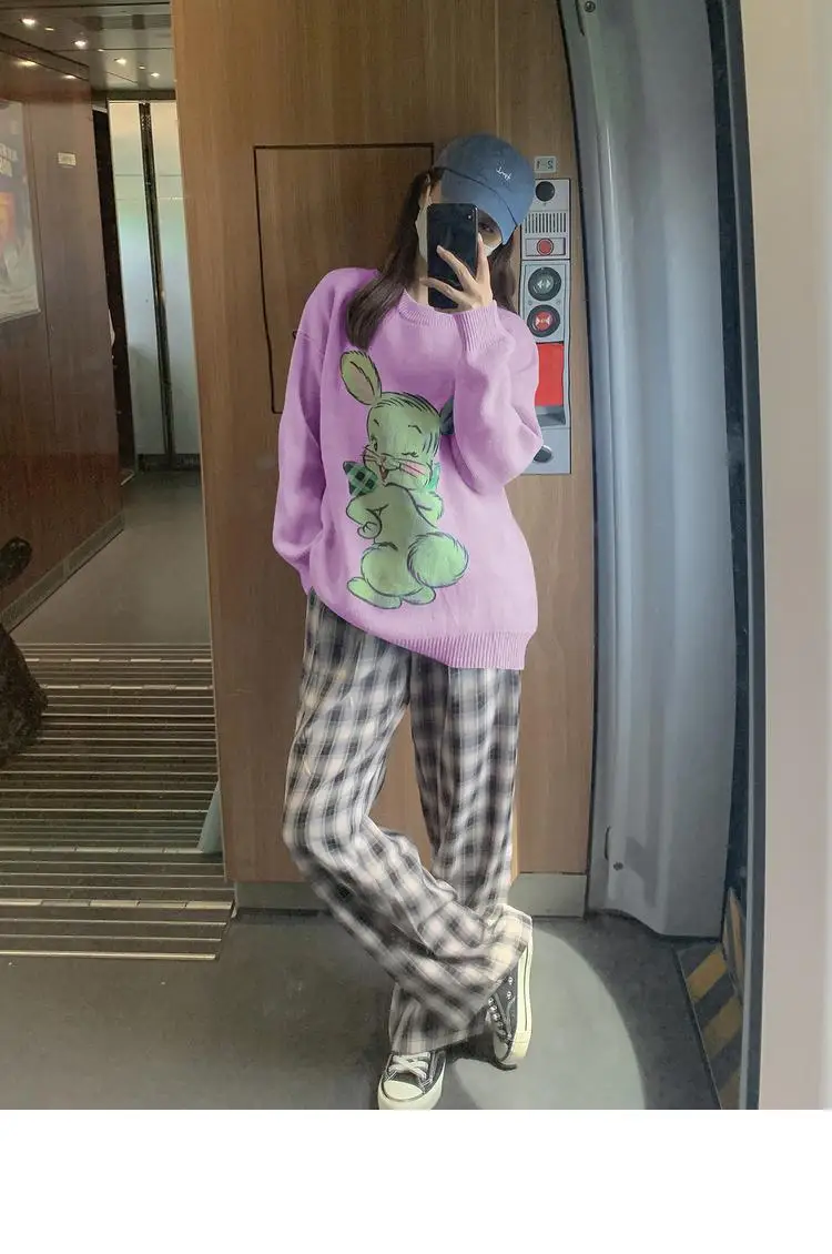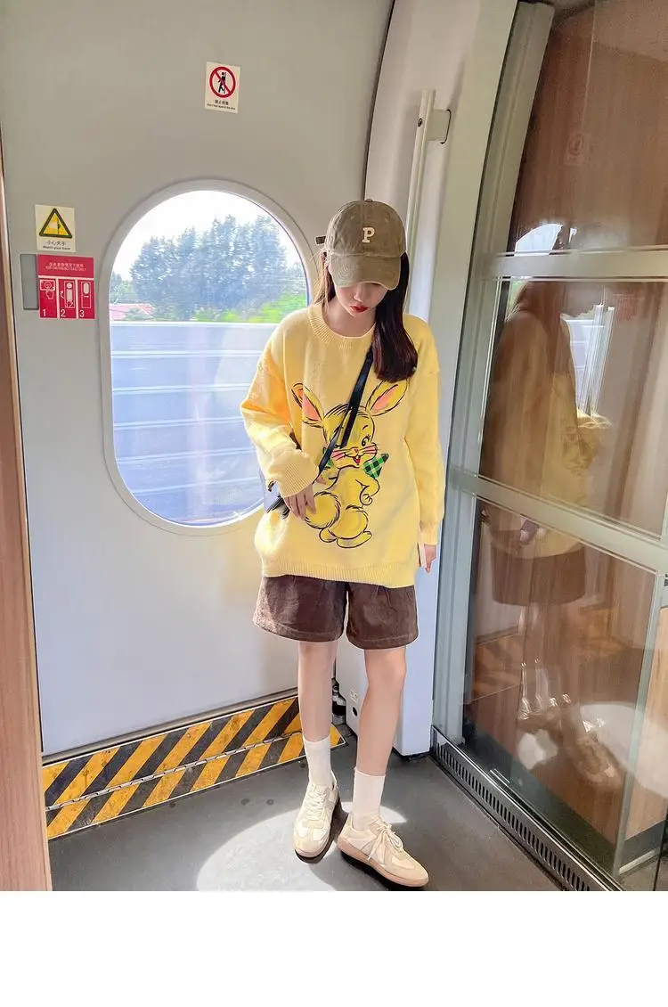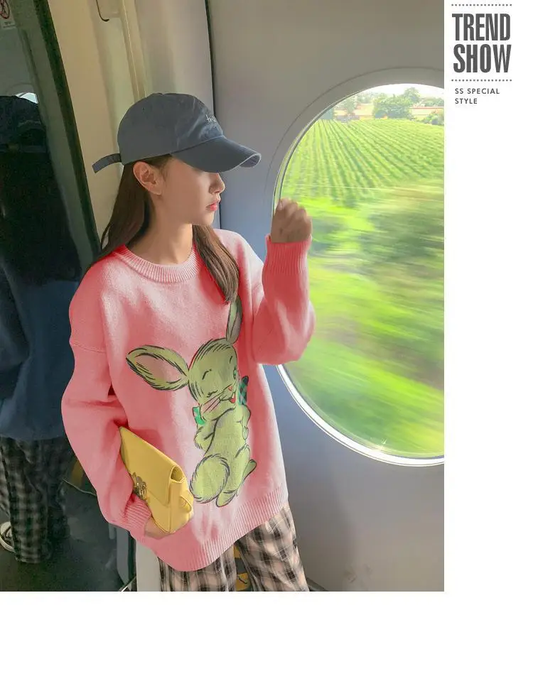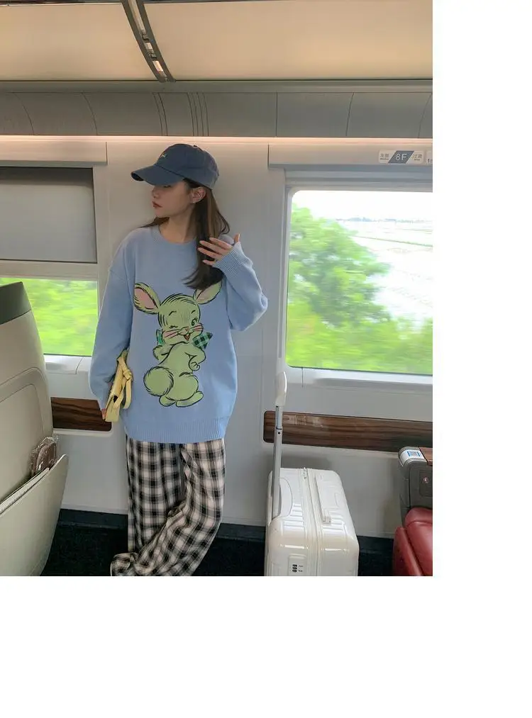 Korean Style Cute White Rabbit Fairy Grunge Sweater Casual Loose Pullover Autumn Vintage Harajuku Women Goth Sweater Y2k Top
