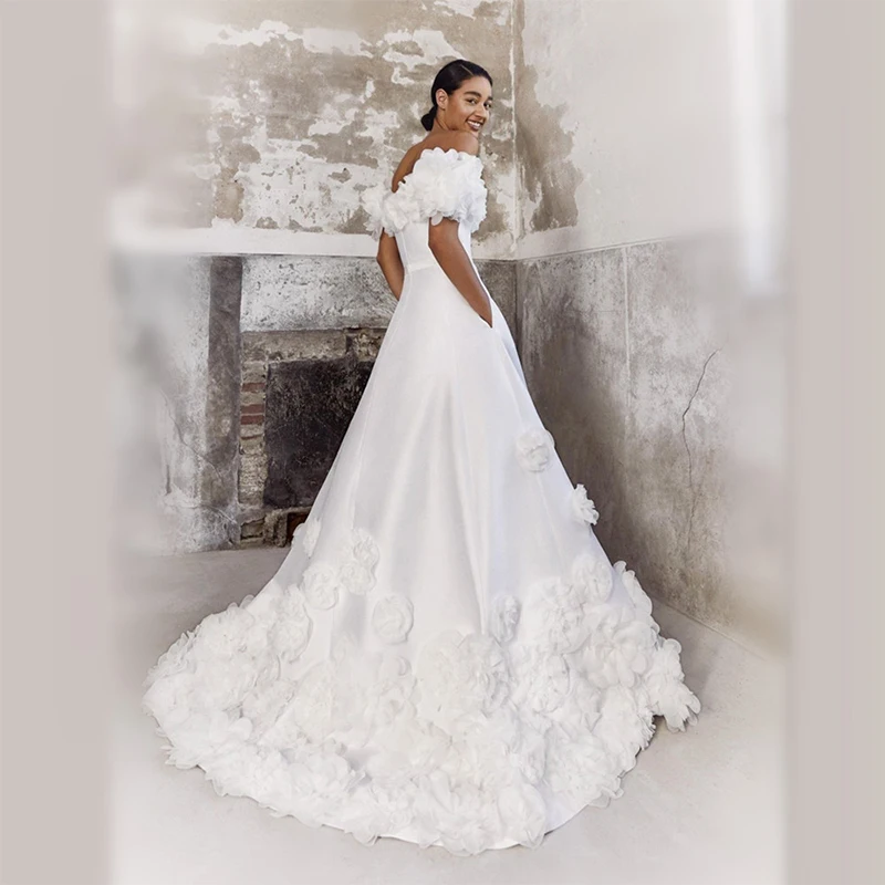 • Luxury Wedding Dress Soft Satin Off The Shoulder Exquisite Appliques Sashes A-Line Prom Gown 2022 Vestido De Novia Women