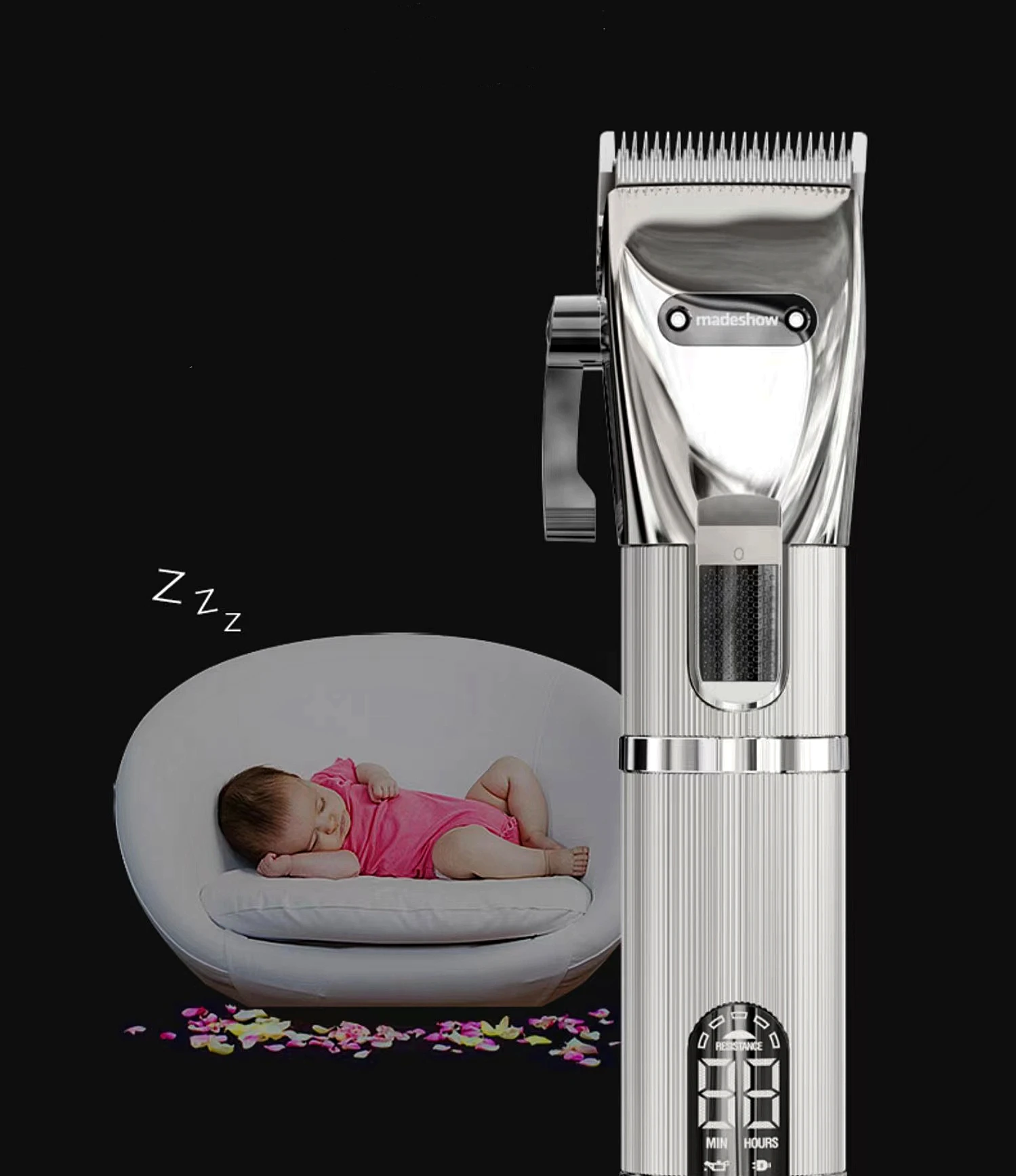 The metal body has a 2-speed regulation of 7000 rpm and 7200 rpm, which is suitable for all kinds of hair, bass shock absorption, black technology motor, all-round pushing, shearing and grooming