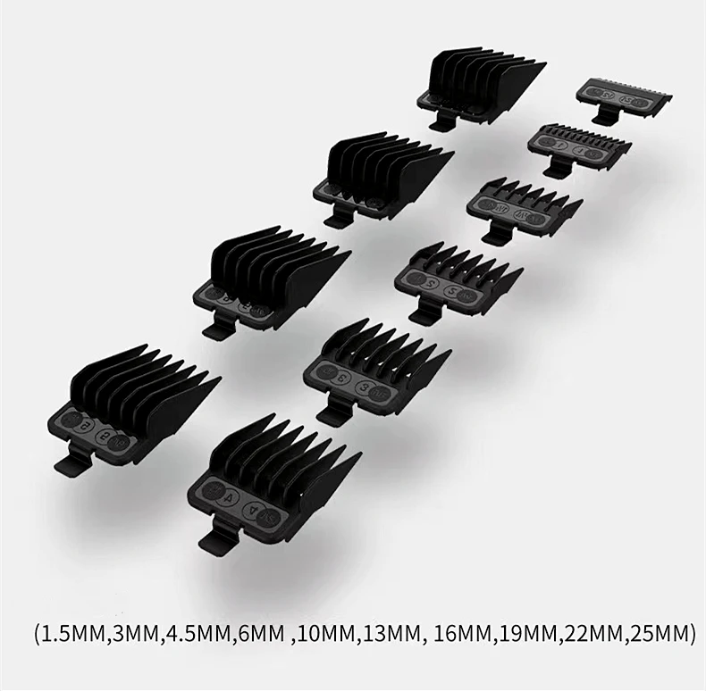 10 specifications of limit comb are suitable for all kinds of hair quality, and meet any hair style 1.5mm 3.0mm 4.5mm 6mm 10mm 13mm 16mm 19mm 22mm 25mm