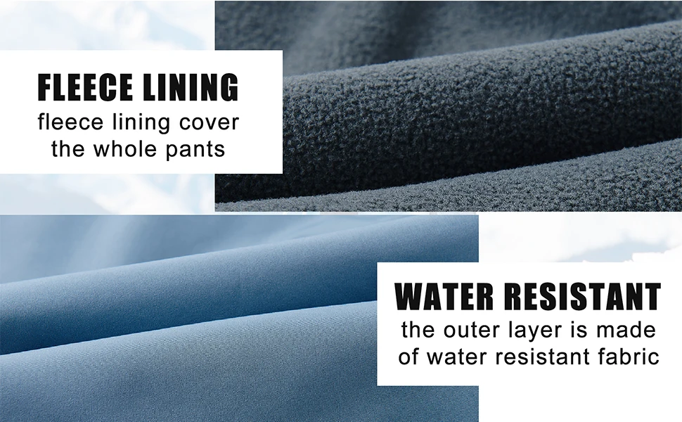 ● Material: Polyester and Spandex Durable Fabric, Polyester Thick Warm Fleece Lined.