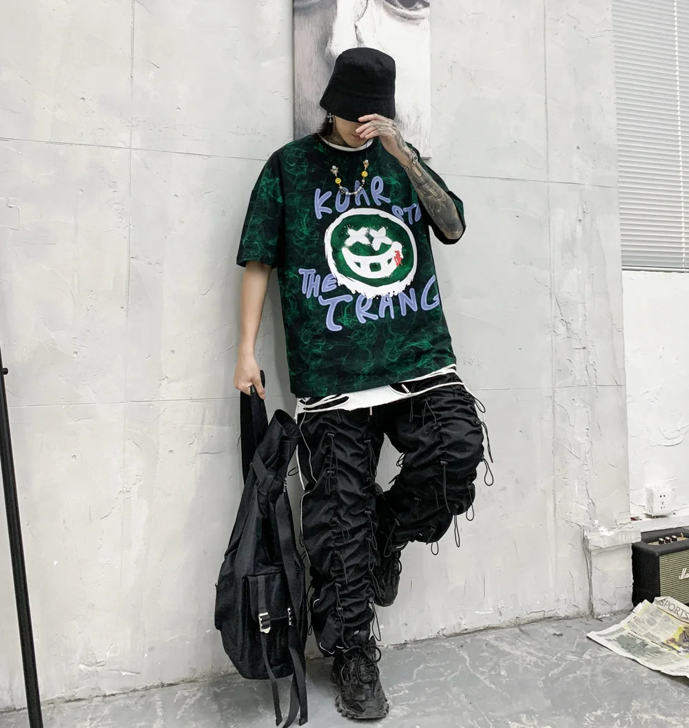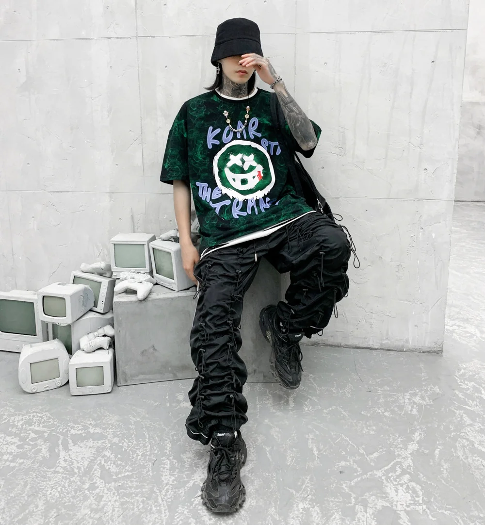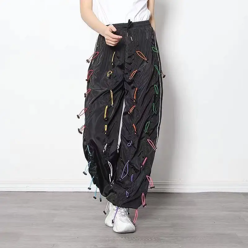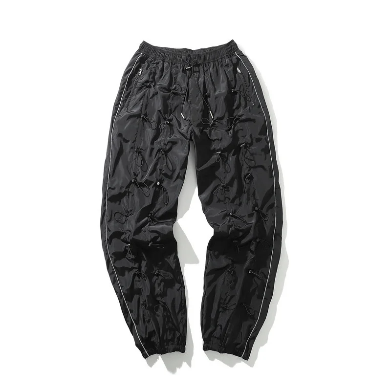 Men's Drawstring Pants Sweatpants Heavy Industry Function Cargo Long Trousers Hip Hop Streetwear Quick Dry Male Wide Leg Pants