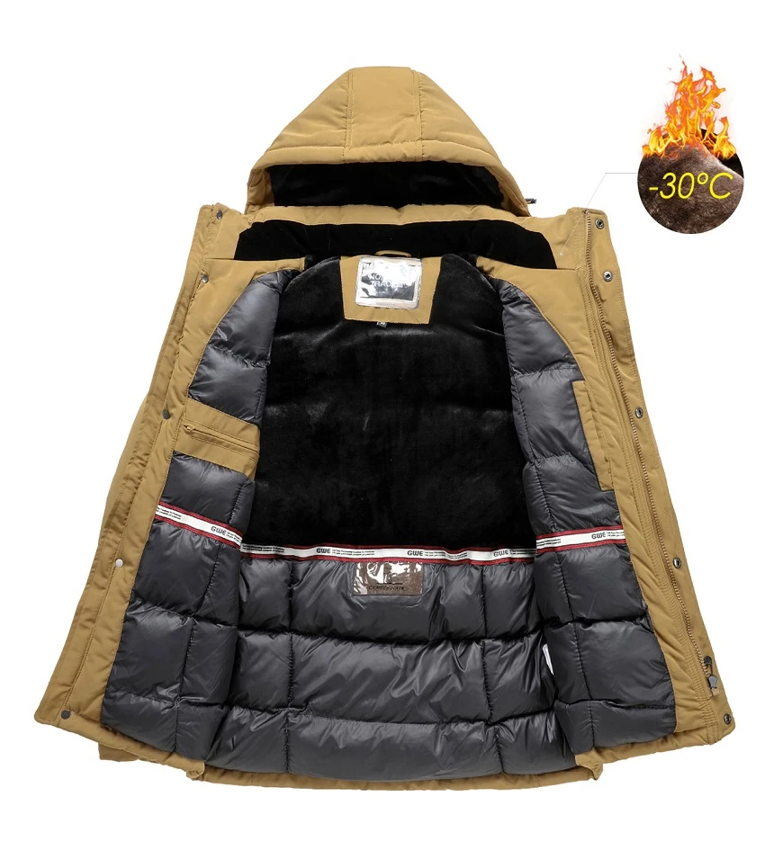 • Men Winter New Casual Long Thick Warm Fleece Hat Waterproof Parkas Jacket Coat Men Outwear Outdoor Fashion Pockets Parka Male