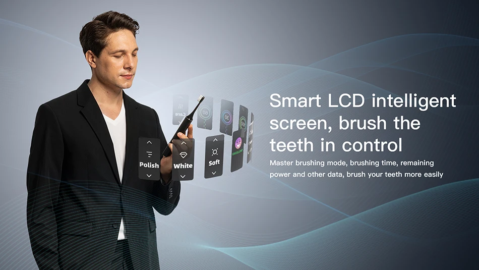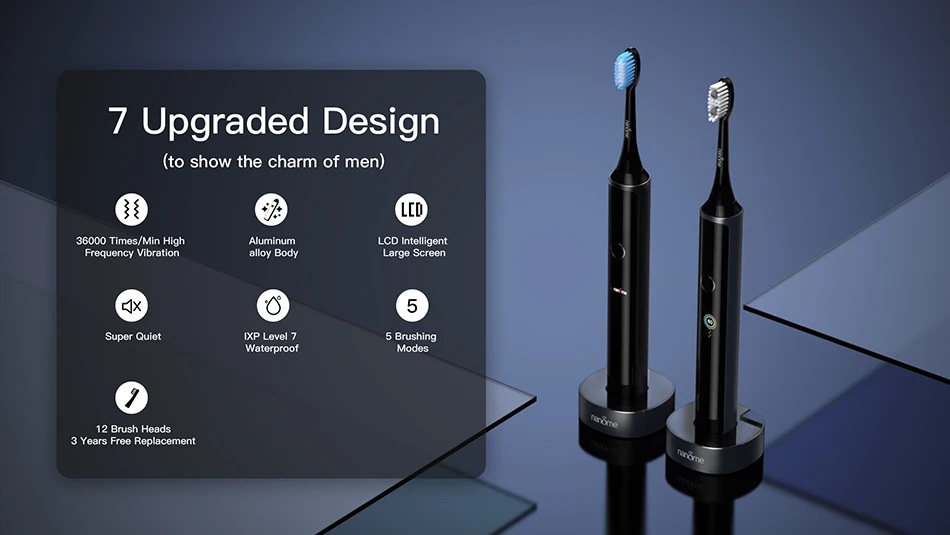 • Nandme NX9000 Electric Toothbrush Ultrasonic IPX7 Waterproof Smart LCD display Inductive charging Deep Cleaning Tooth Brush
