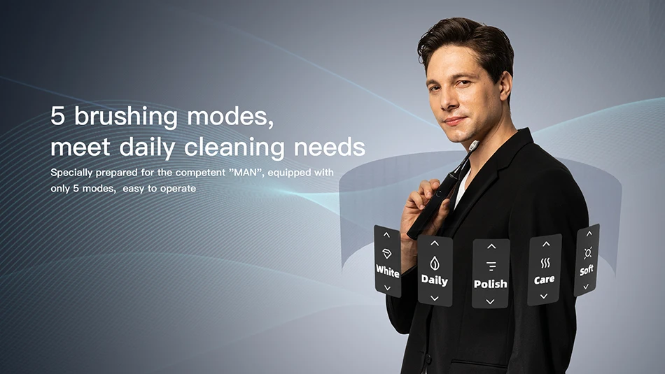 Master brushing mode, brushing time, remaining power and other data, brush your teeth more easily5 brushing modes, meet daily cleaning needs