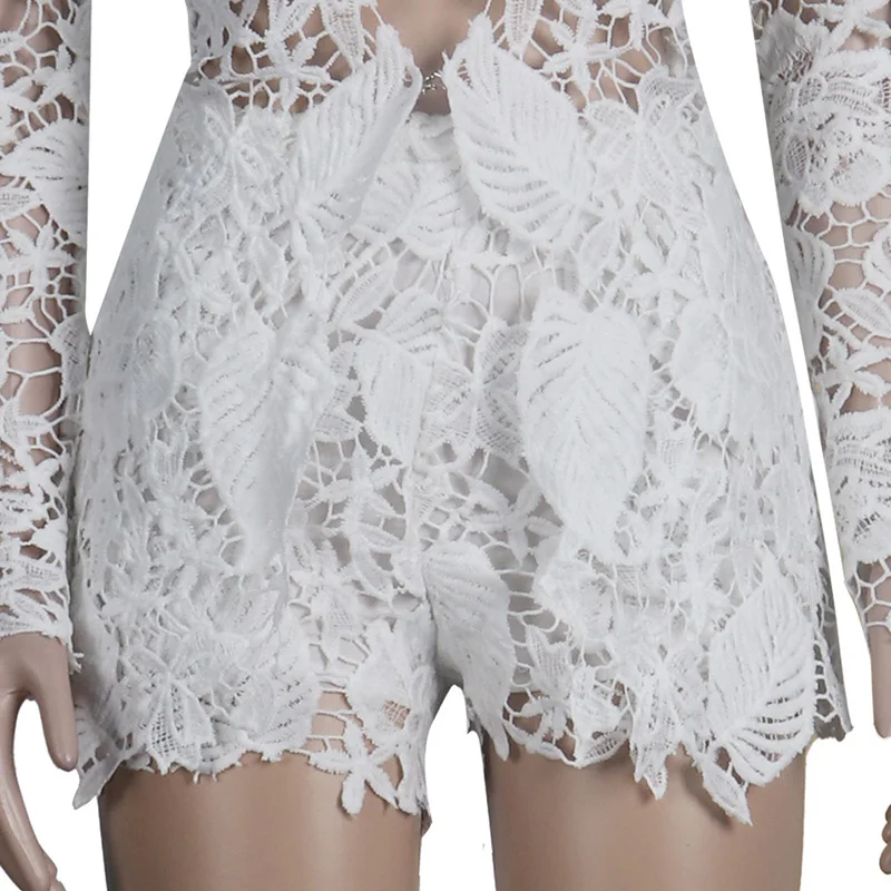 Neeleywall Elegant White Embroidery Cardigans And Shorts Two-Pice Set Fashion Hollow Out Matching Shorts Set Formal Wear Suits