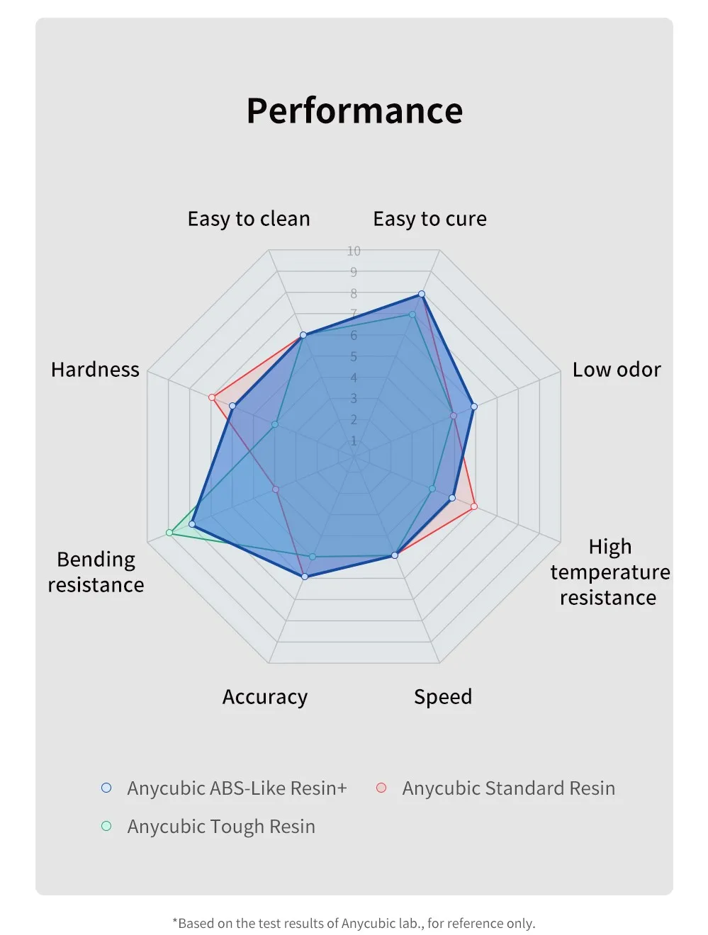 The conservation period of the Anycubic ABS-Like Resin+ is 18 months, which is longer than other resins on the market.