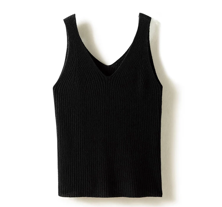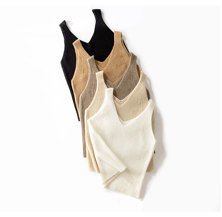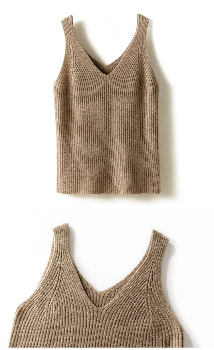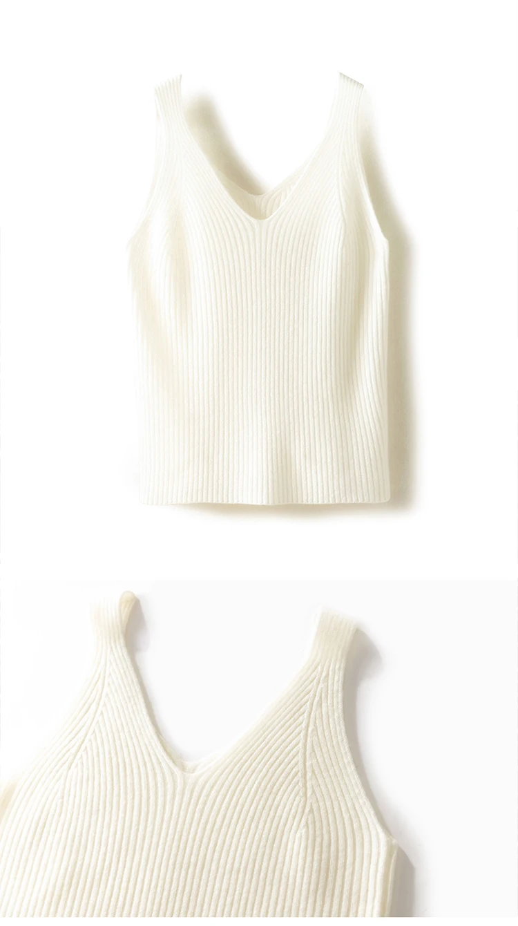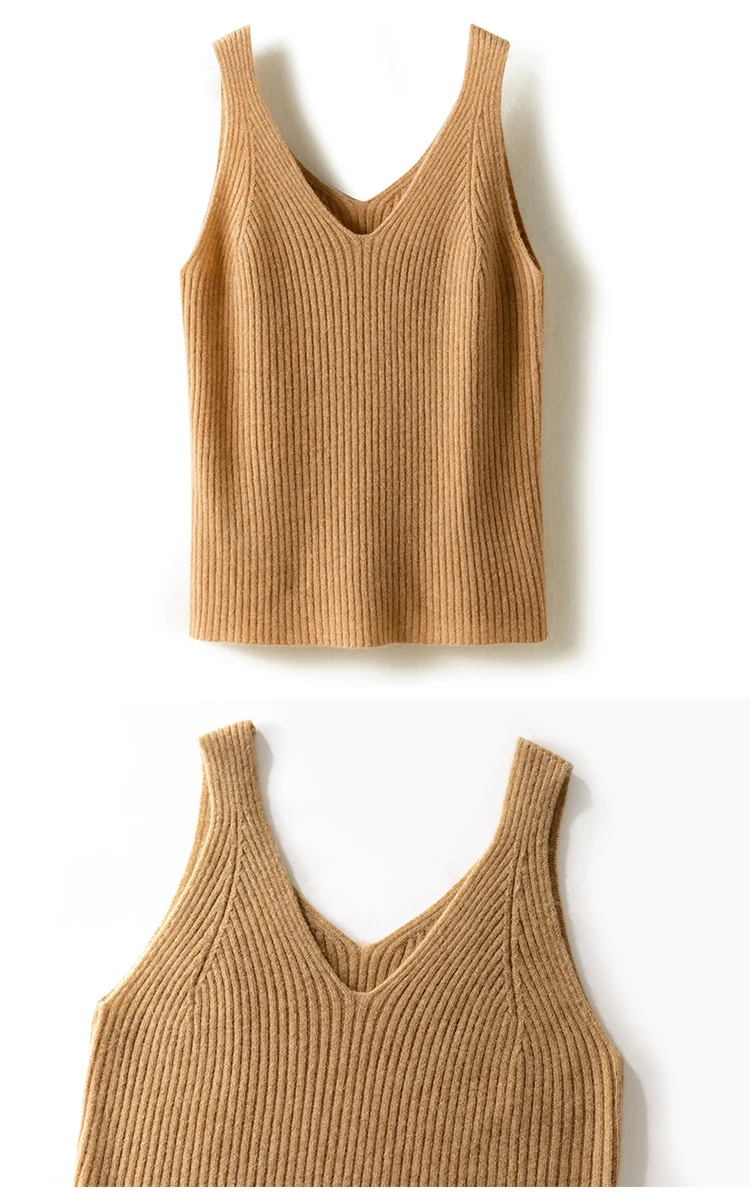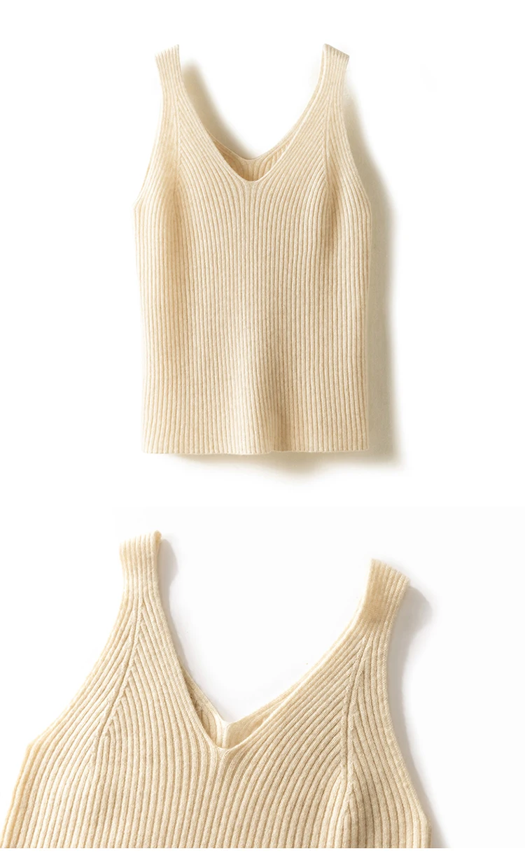 New Women Sexy 100% Cashmere High Elasticity Vest Crop Fashion Tops O-Neck Tank Soft Warm Ladies Knit Camisole Bottoming