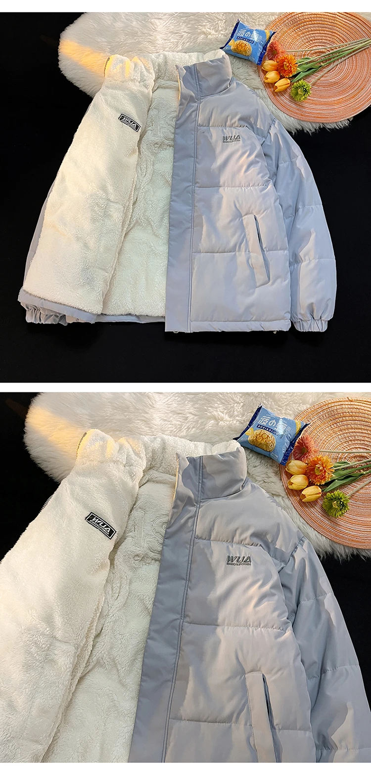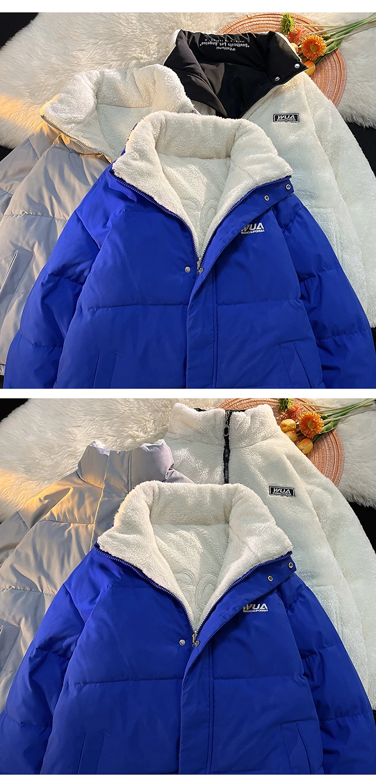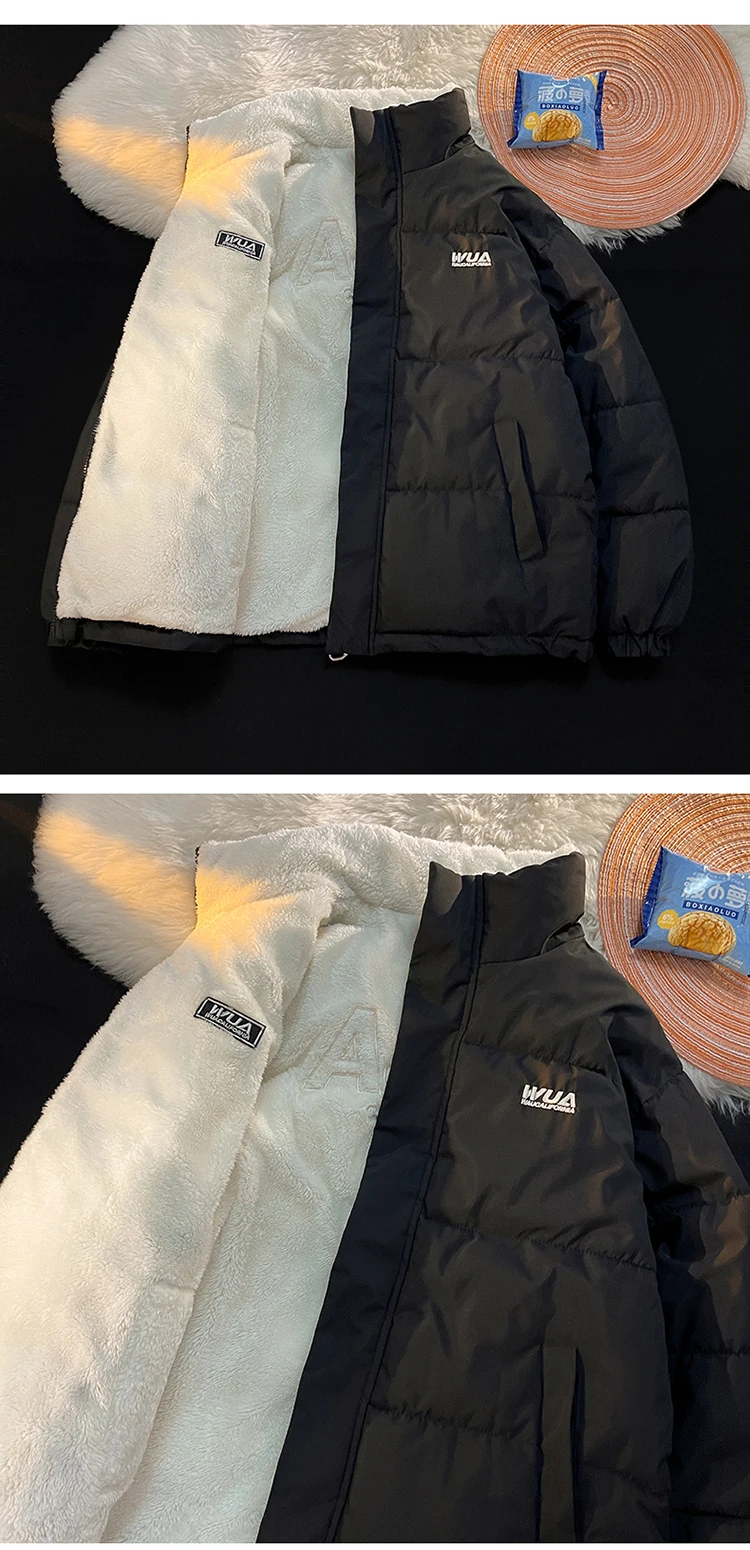 Parka Fleece Thicken Two Sided Jacket Winter Keep Warm Men&Women Clothing Korean Fashion Streetwear Casual Loose Man Cotton Coat
