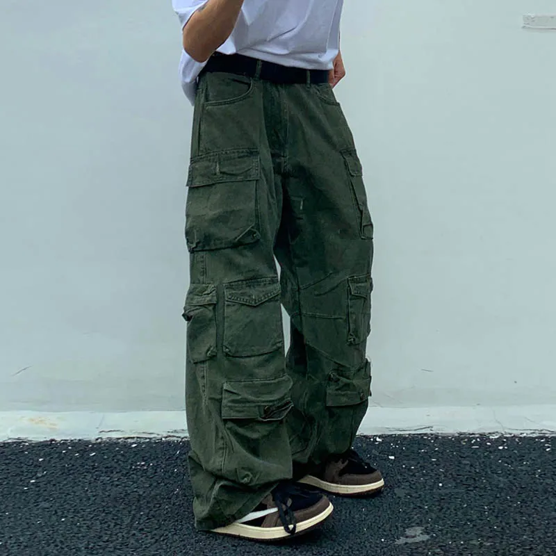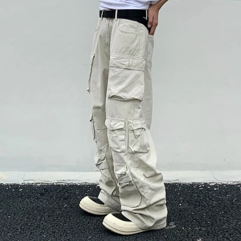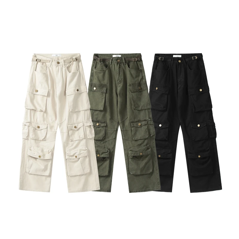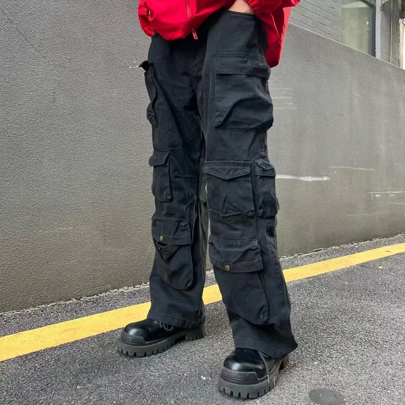 Retro Mult-pockets Streetwear Solid Color Overalls Male and Female Straight Harajuku Baggy Casual Cargos Loose Oversize Trousers