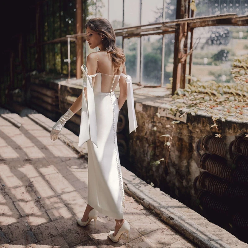 Simple Sheath Style Wedding Dress Off The Shoulder Straps Sweetheart Bridal Gowns Saudi Arabic Backless Bridal Gowns