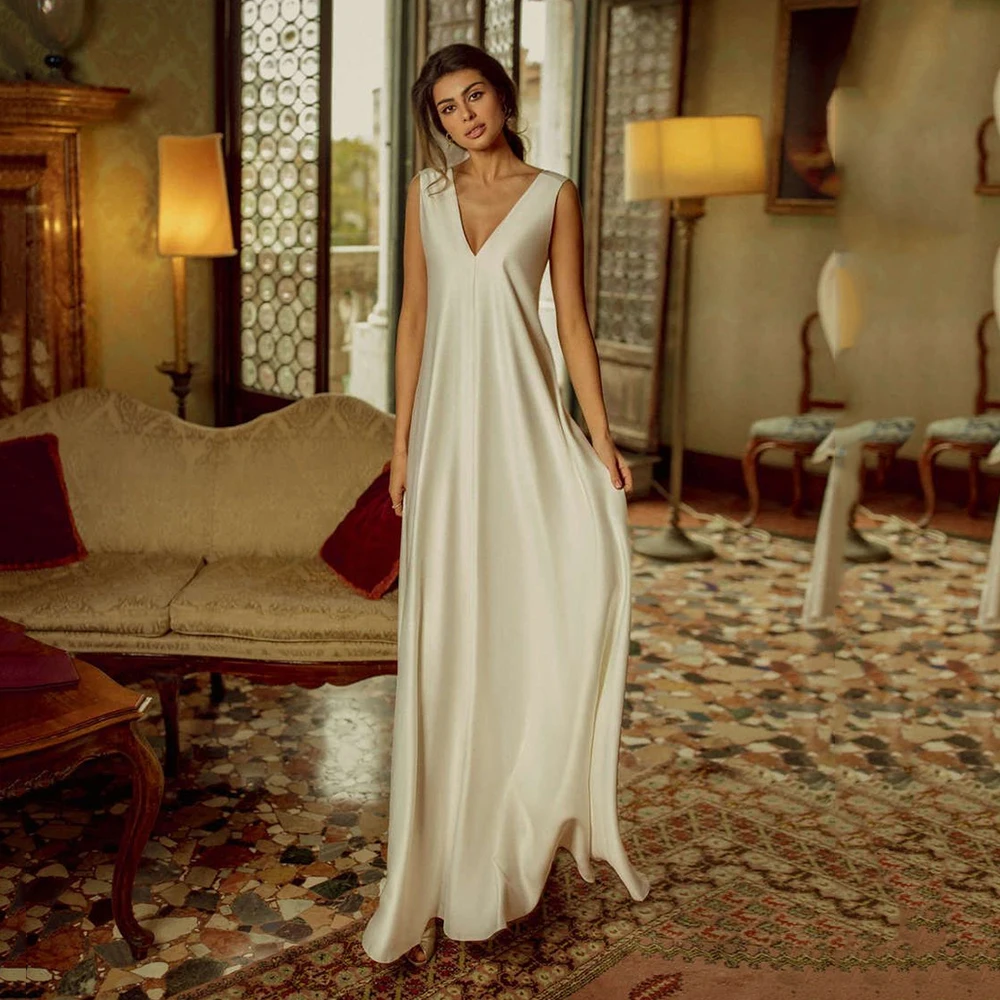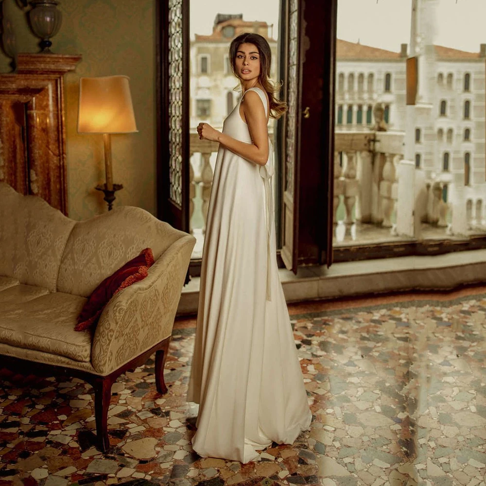 Simple Wedding Dress For Women High Waist Sexy V Neck Empire Satin Bridal Gown With Bow knot Civil Vestido De Novia Custom Made