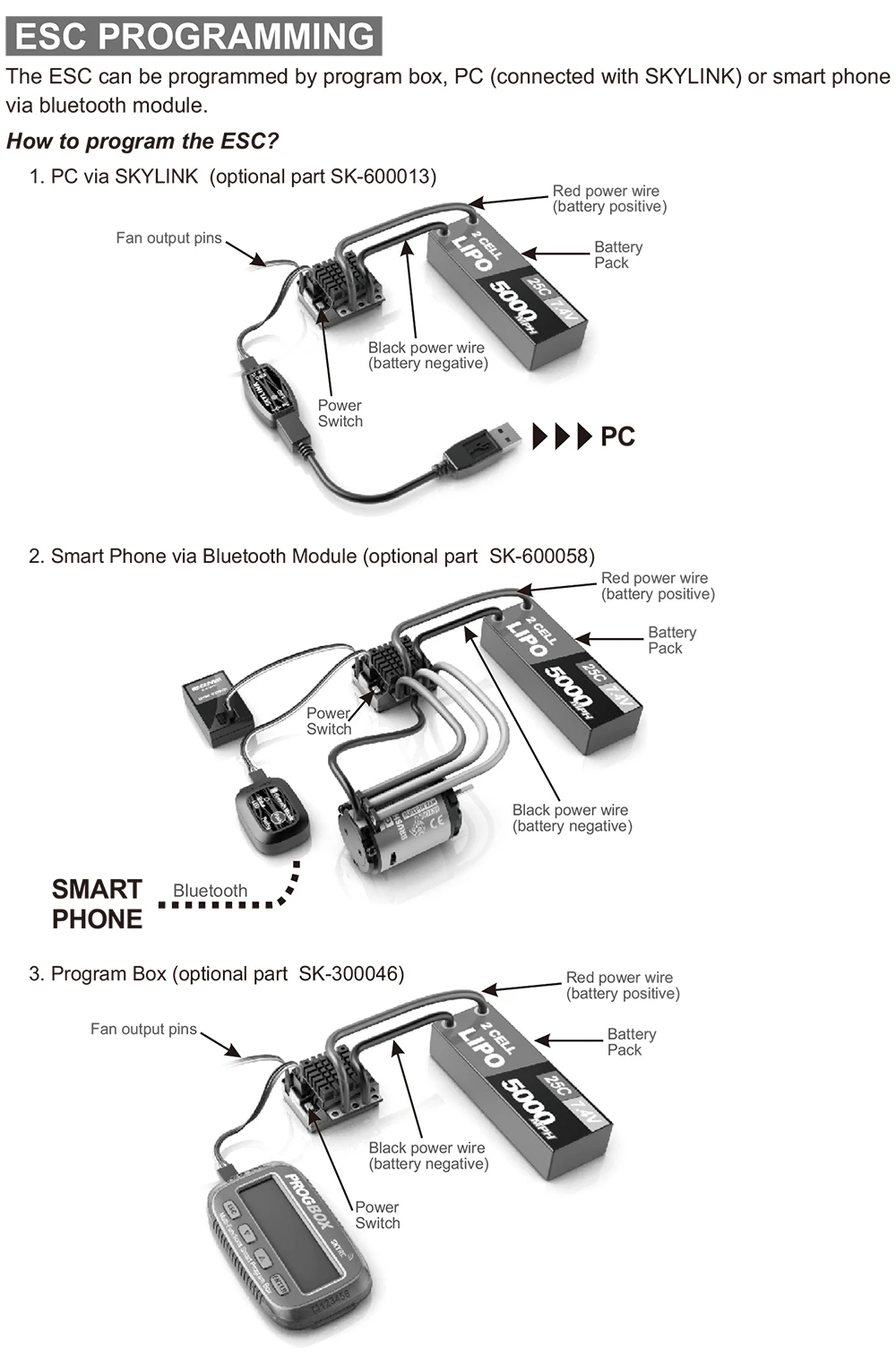It can be programed by Program Box(SK-300046), PC via SKYLINK(SK-600013) or samrt phone via Bluetooth Module(SK-600058).[Optional]