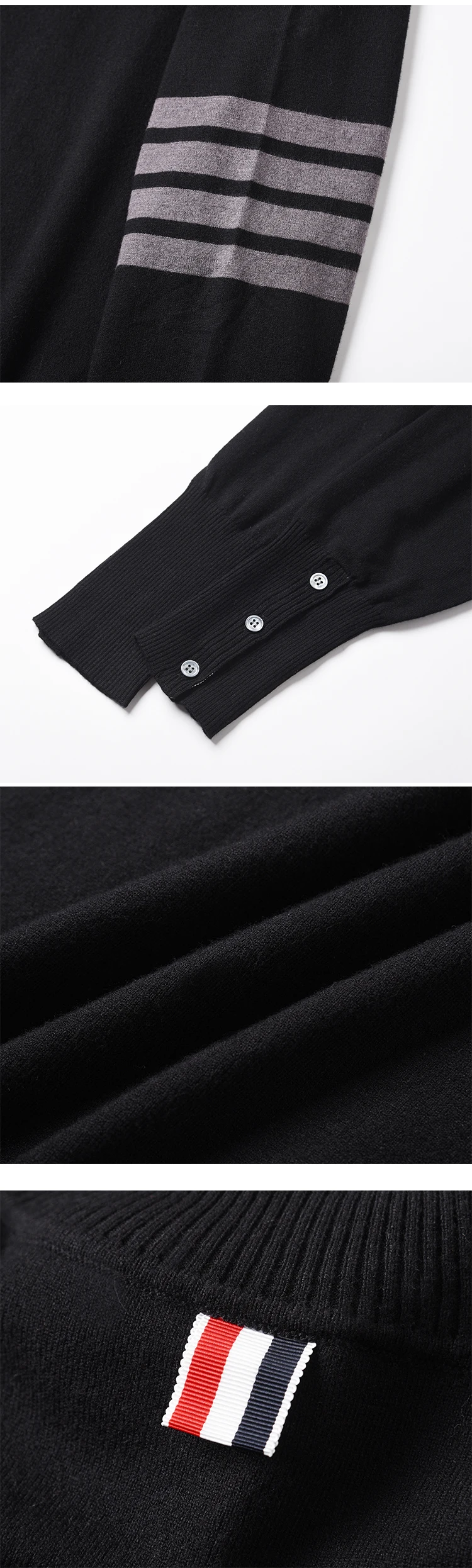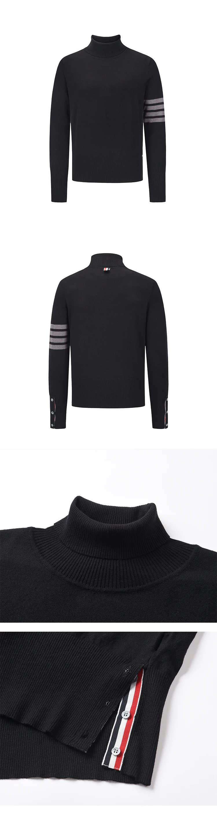 TB THOM Sweater Male Autumn Luxury Brand Clothing Gray Stripes Turtleneck Black Blouse Harajuku Korean Designer TB Sweaters