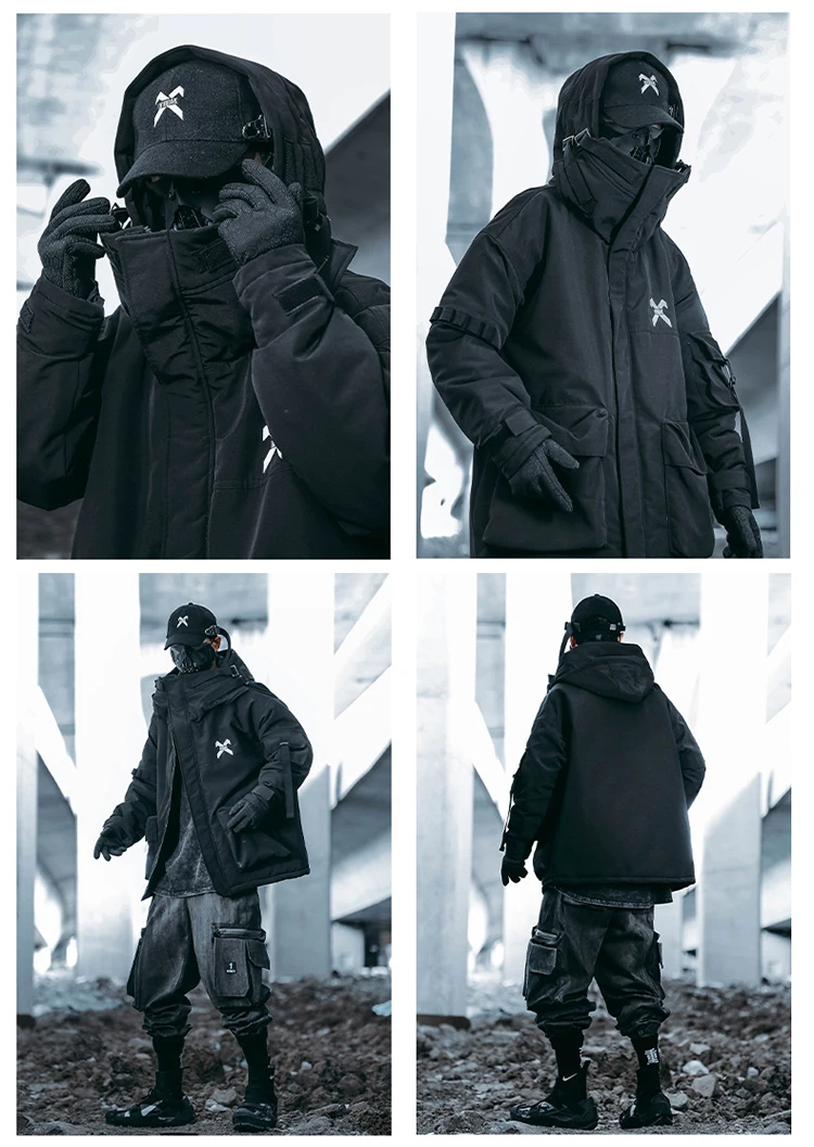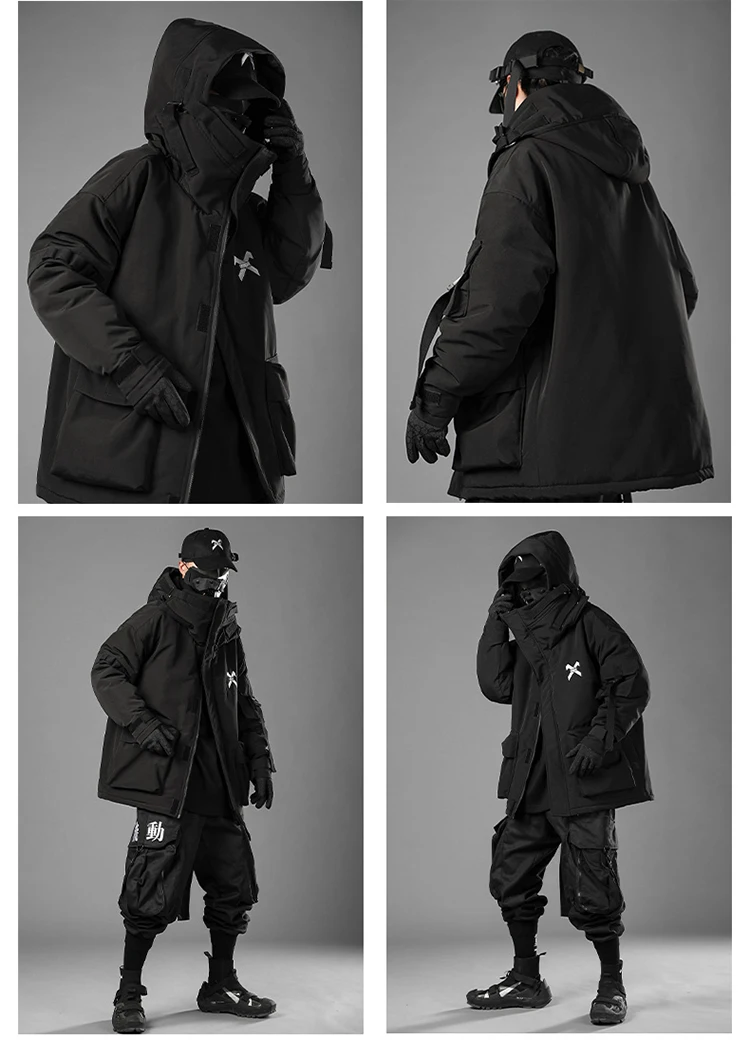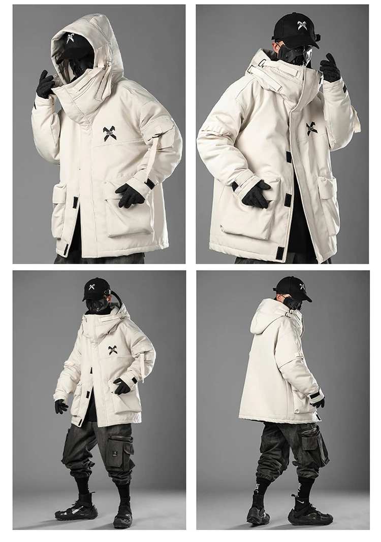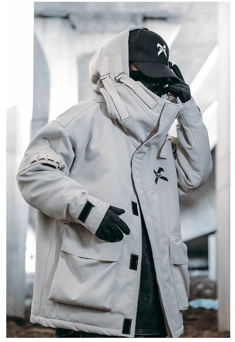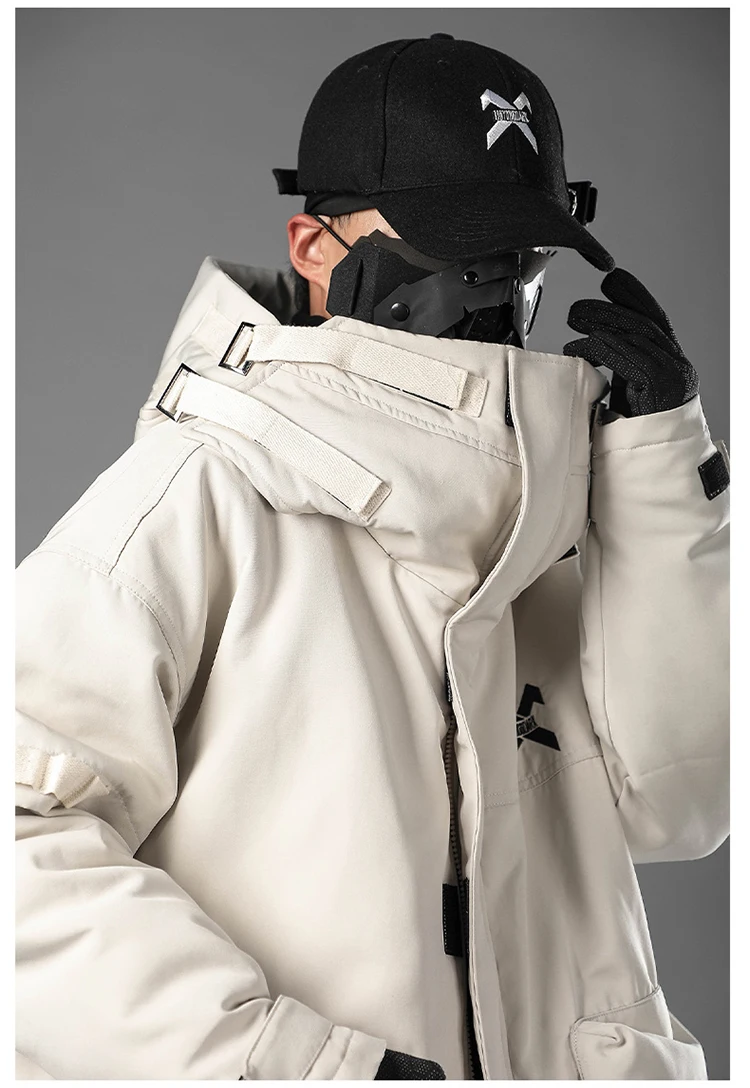 Unisex Male Fish Mouth Hooded Winter Coat Padding Puffer Jacket Heavyweight Men'S Clothes Varsity Harajuku Hiphop High Street