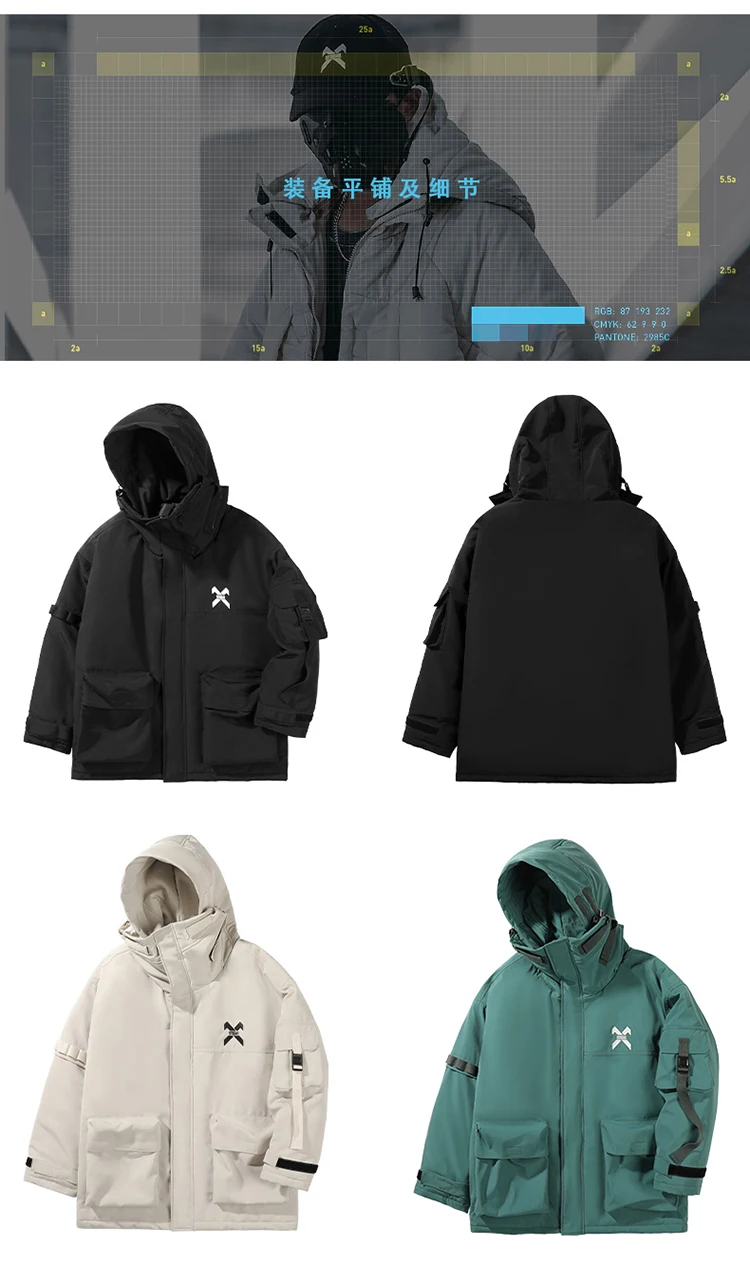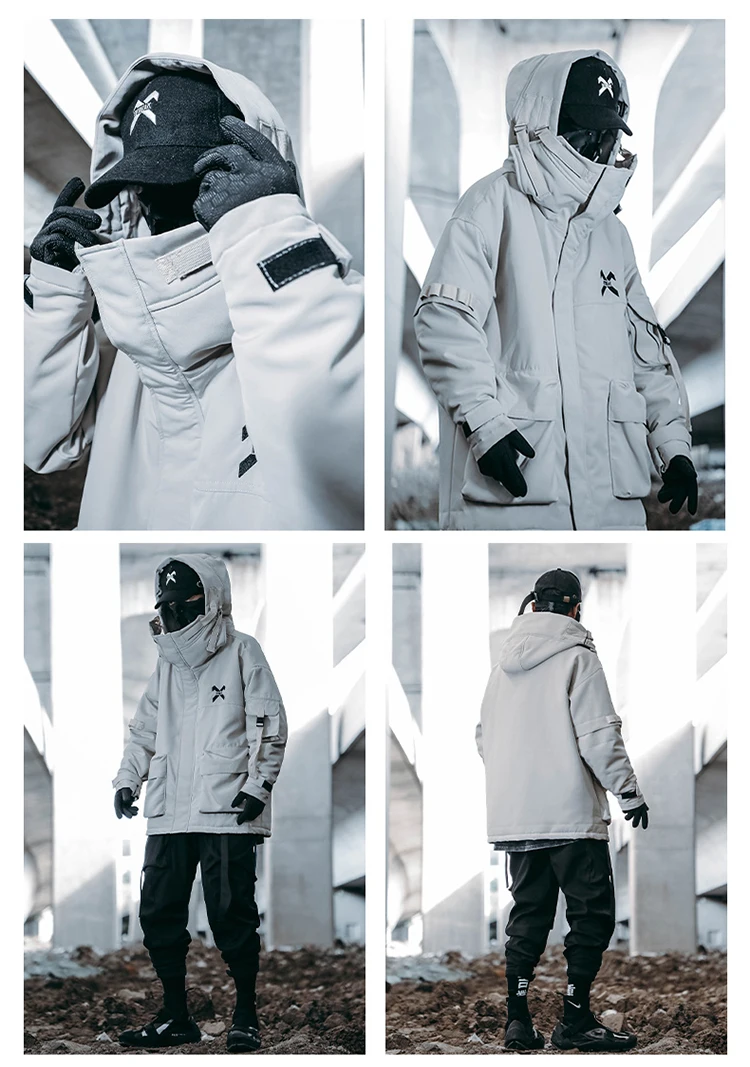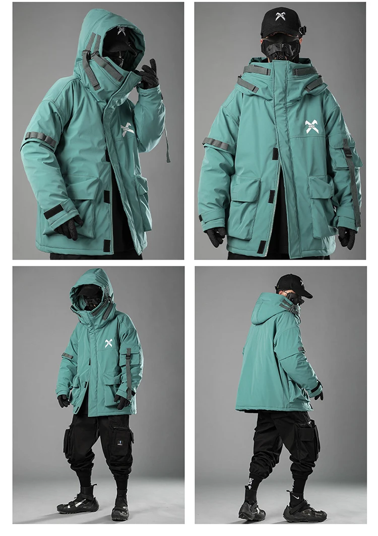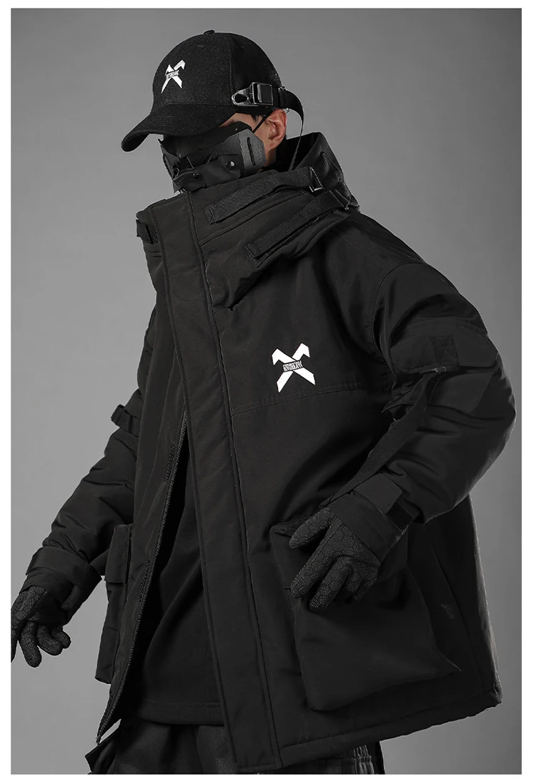 Unisex Male Fish Mouth Hooded Winter Coat Padding Puffer Jacket Heavyweight Men'S Clothes Varsity Harajuku Hiphop High Street