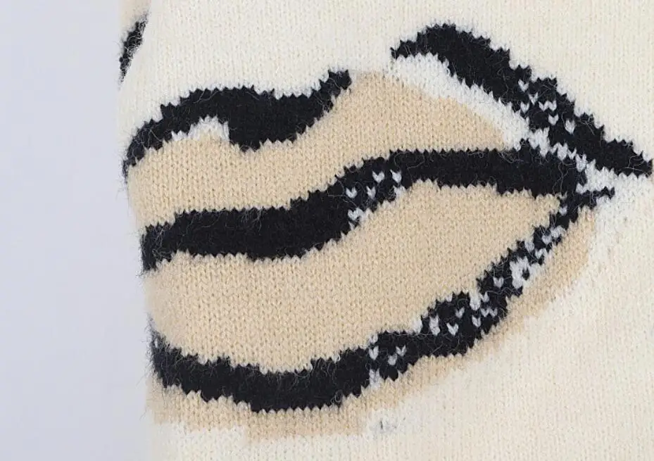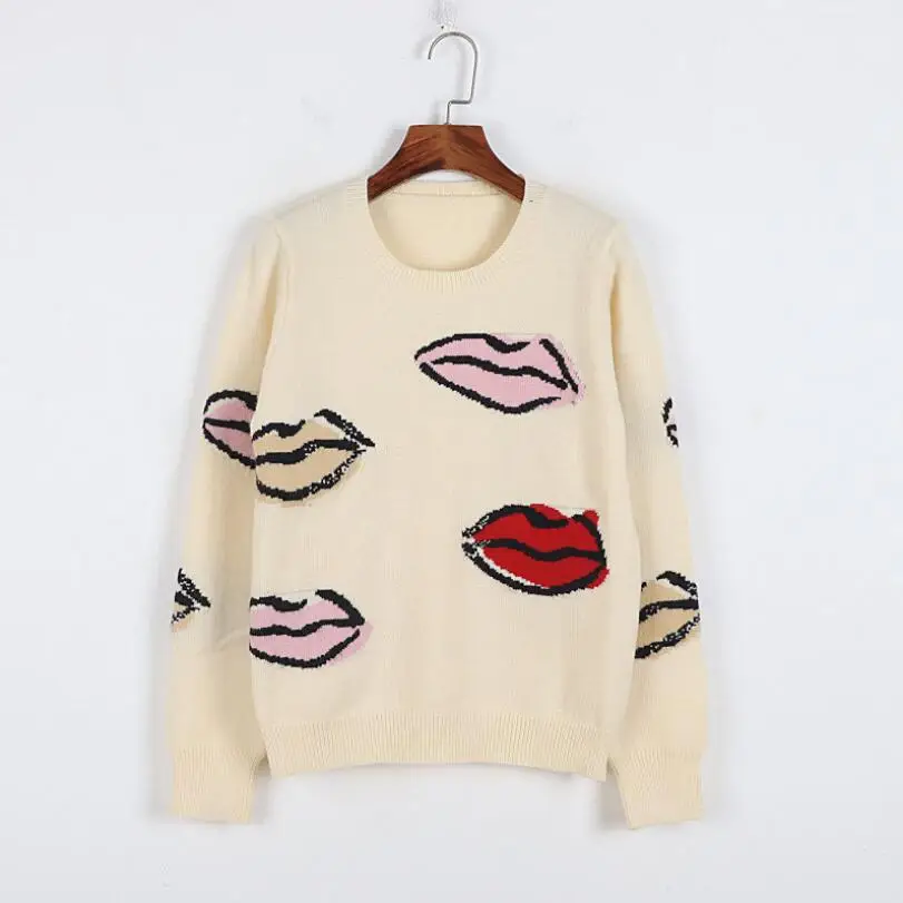 Vintage Sweaters Women 2021 Autumn Winter Lips Pattern Casual Long Sleeve Streetwear Knitted Pullovers Jumper Tops Clothing p396
