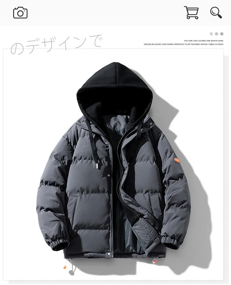 Winter Men Parka Solid Color Harajuku High Quality Men Hooded Casual Warm Thickened Jacket Men Fashion Casual Parka