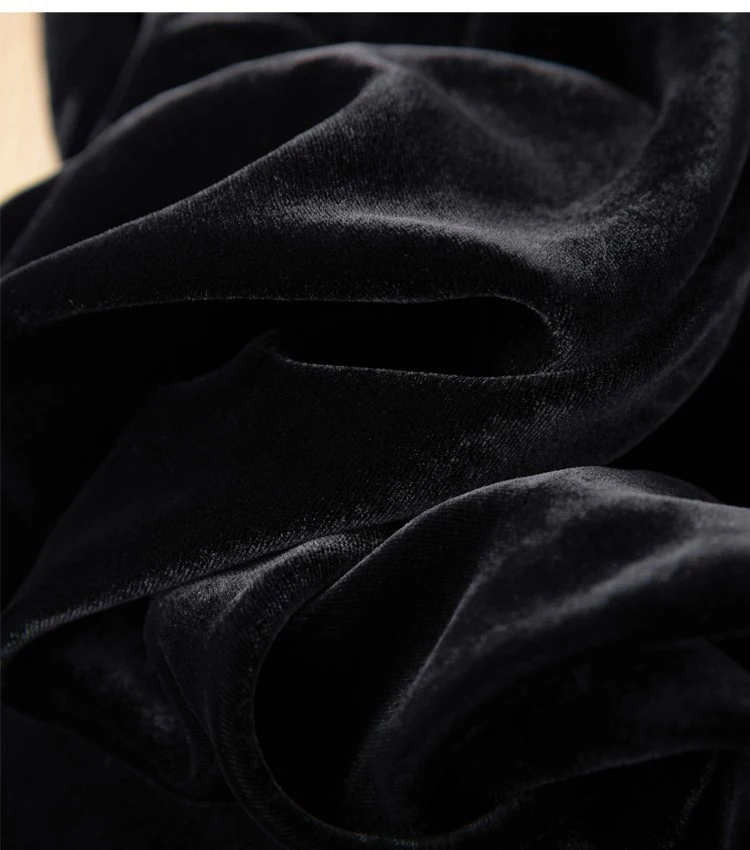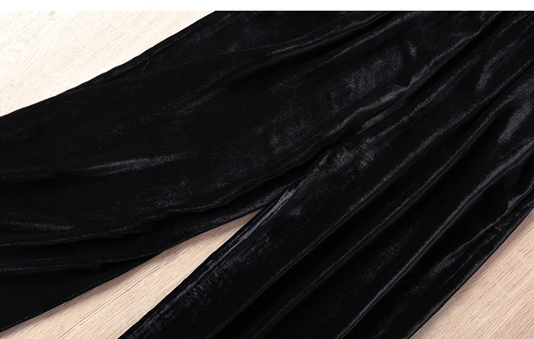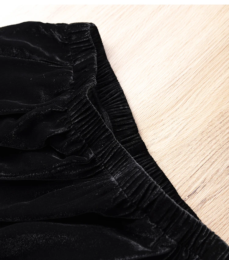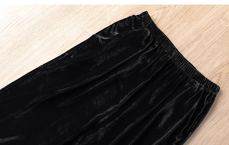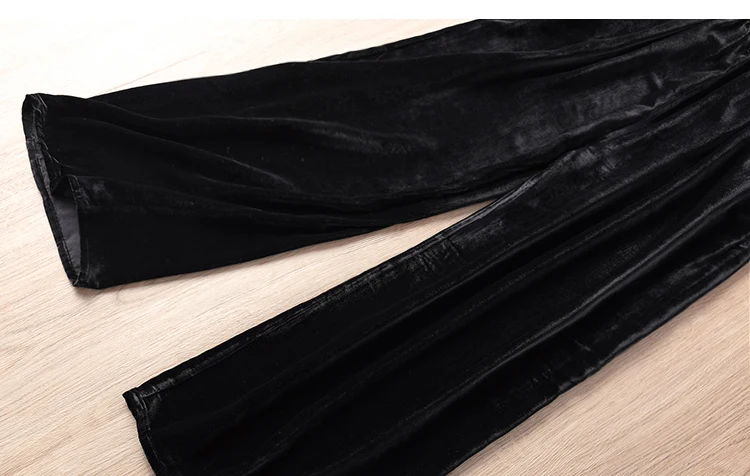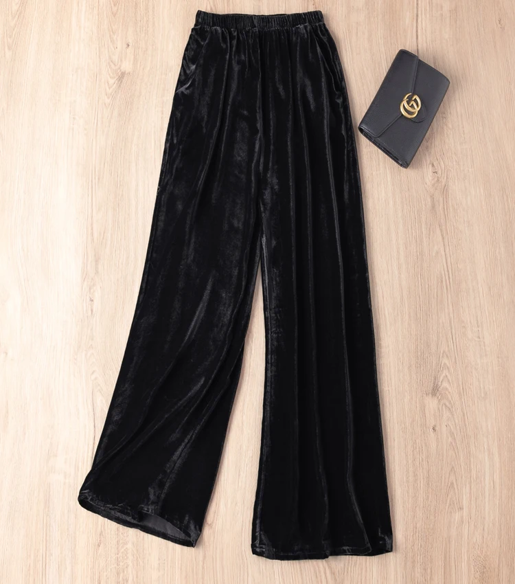 Women Velvet Silk Long Pants Natural Mulberry Silk Loose Type Wide Leg Pants Elegant Trousers Black MM633