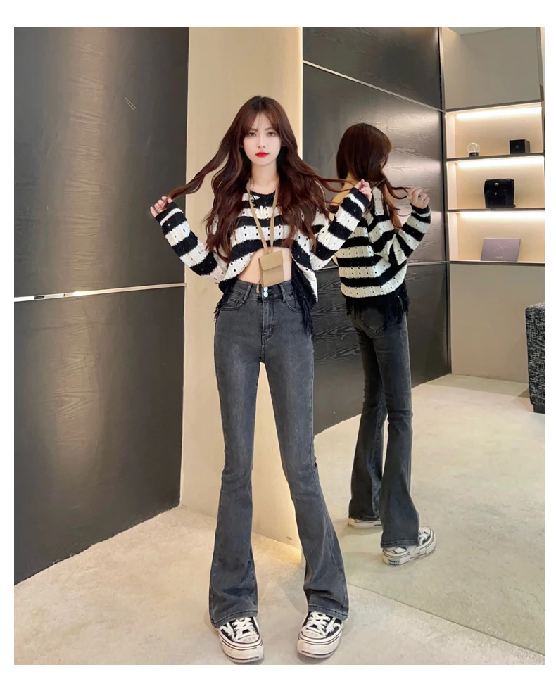 ZOENOVA flared jeans low waist loose comfortable women's pants 2022 elastic fashion boyfriend style jeans pants